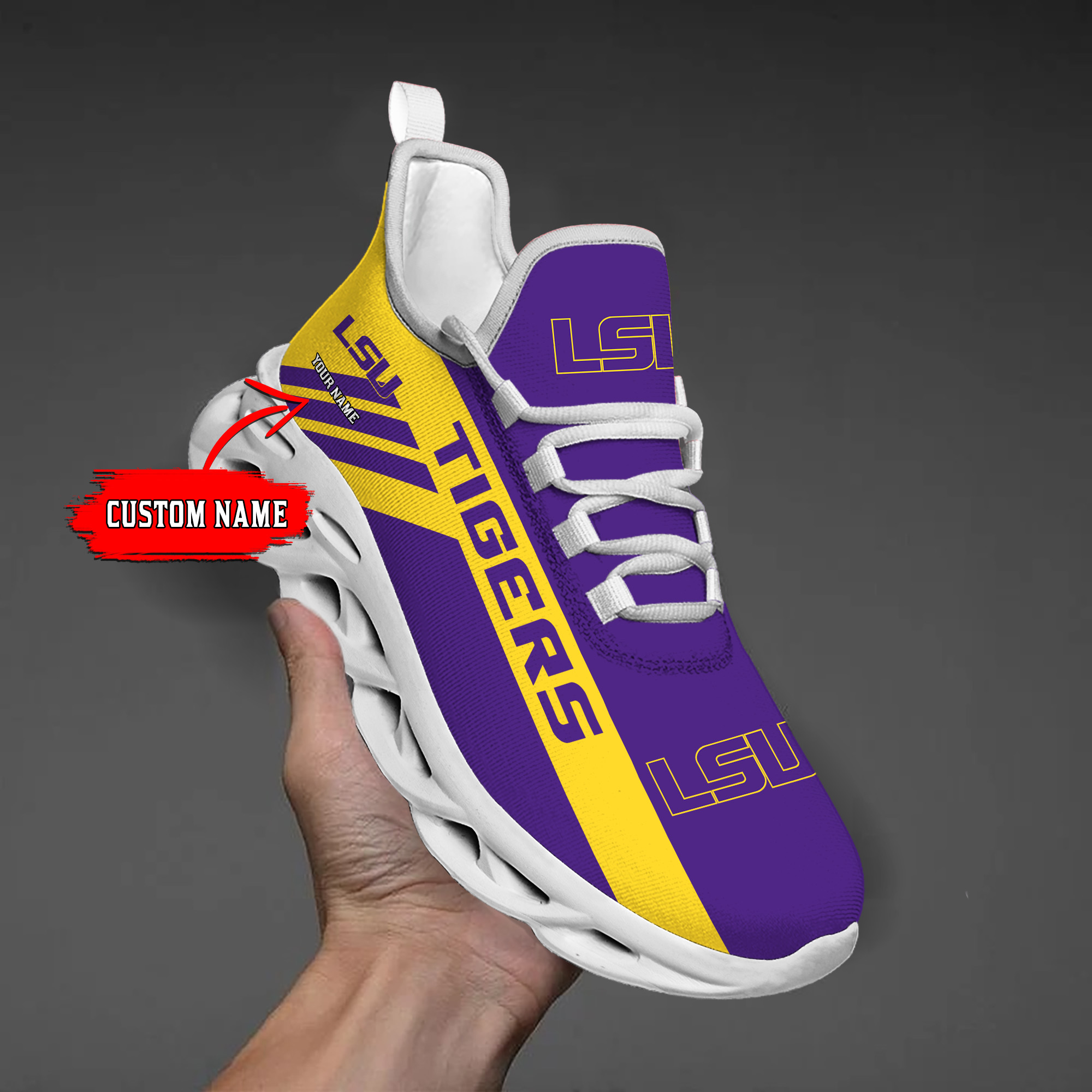 LSU Tigers Custom Name PERSONALIZED MAX SOUL SHOES DS004