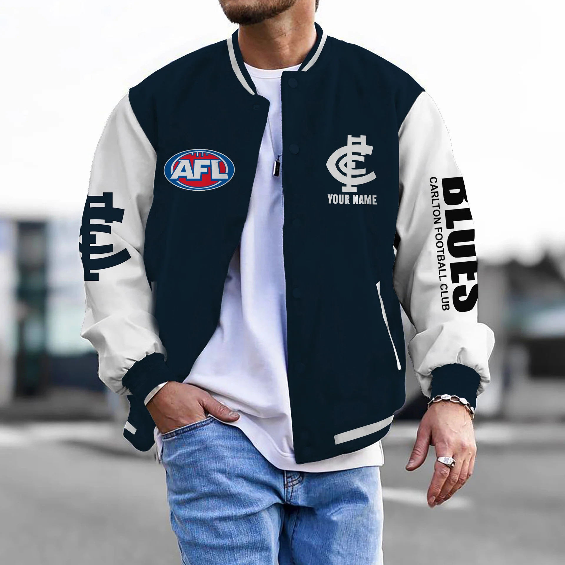 Carlton Football Club AFL Custom Name Baseball Jacket Gifts For Fans
