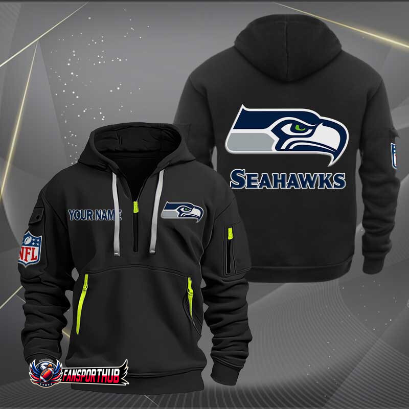 Seattle Seahawks New Personalized Quarter Zip Hoodie AZBTQZH000222