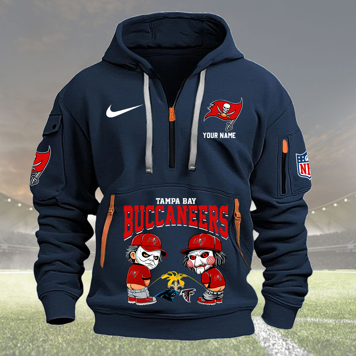 Tampa Bay Buccaneers Halloween Horror Collection Personalize Quarter Zip Hoodie AZCAQZH000015