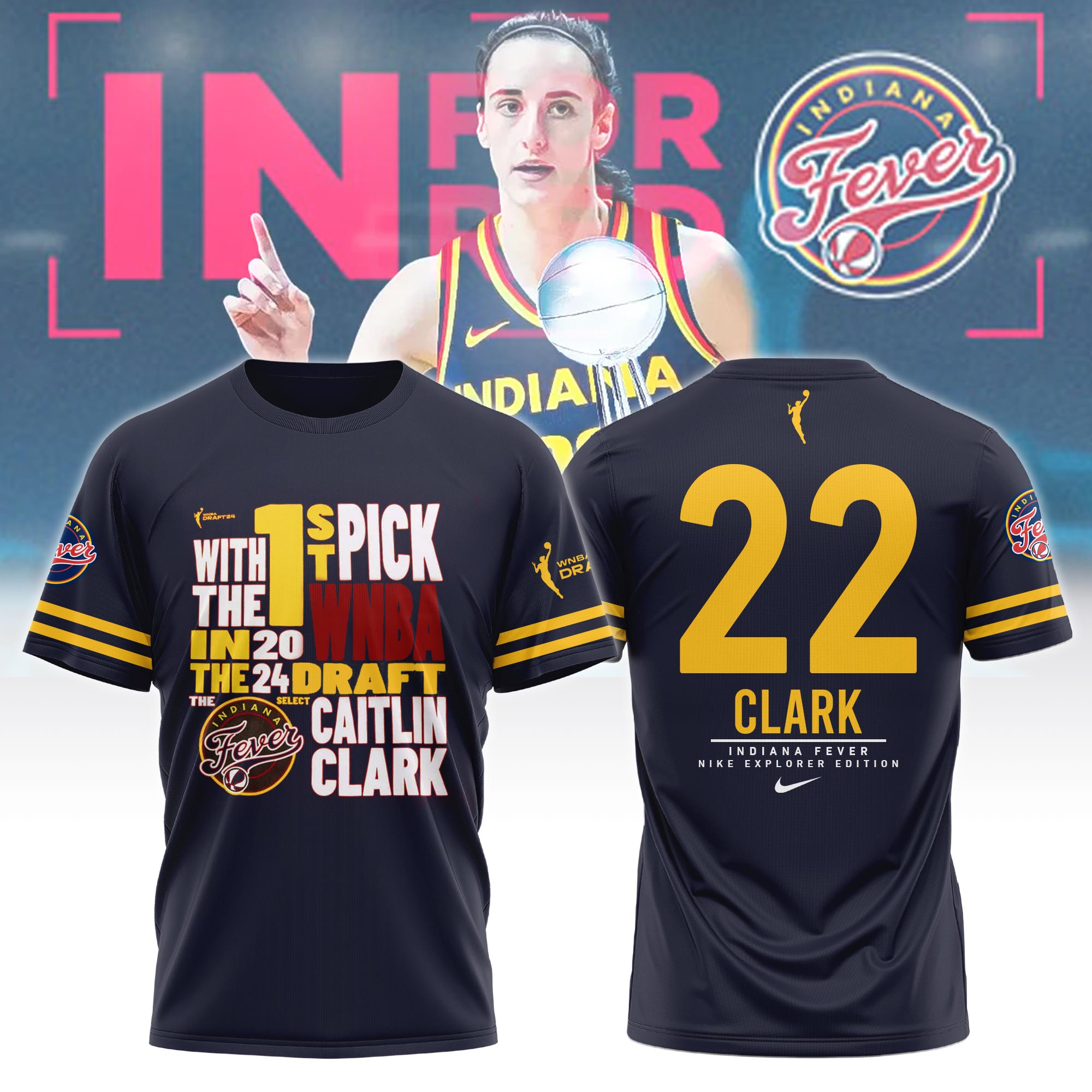 Unisex Indiana Fever Caitlin Clark Navy WNBA Draft Explorer Edition Player Name & Number TShirt