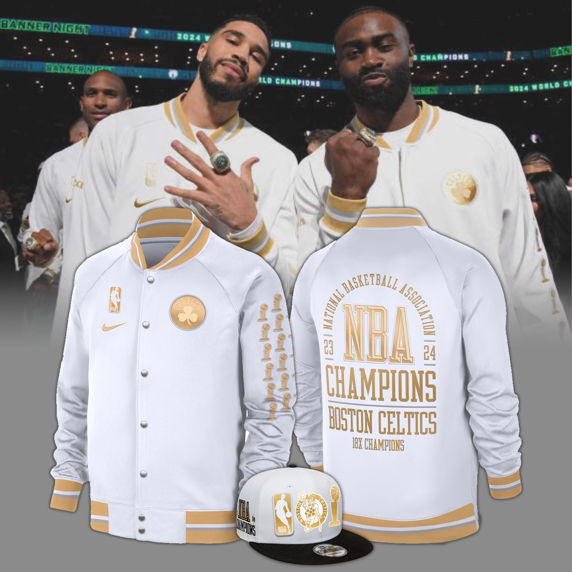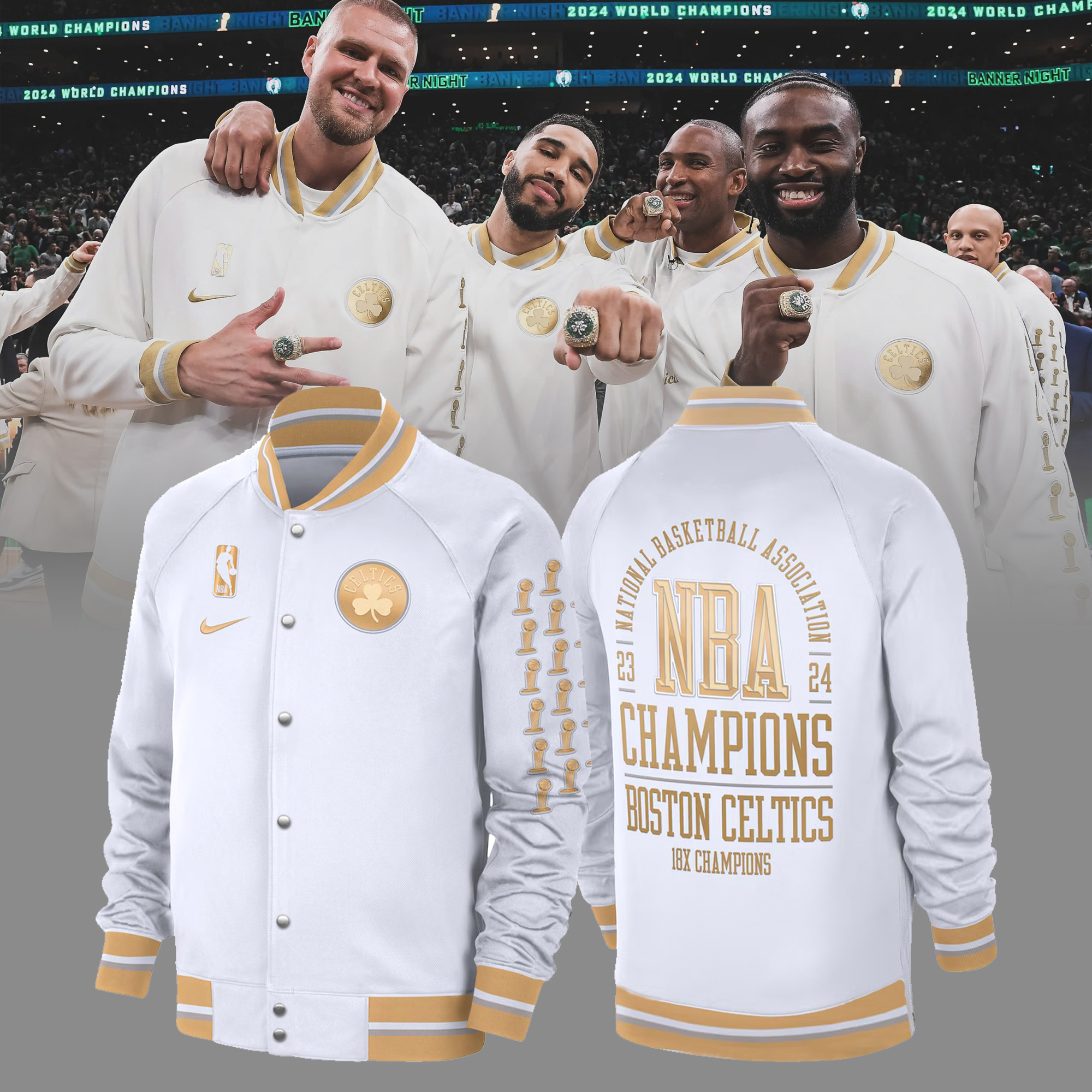 Unisex White Boston Celtics NBA Finals Champions Banner Collection Jacket