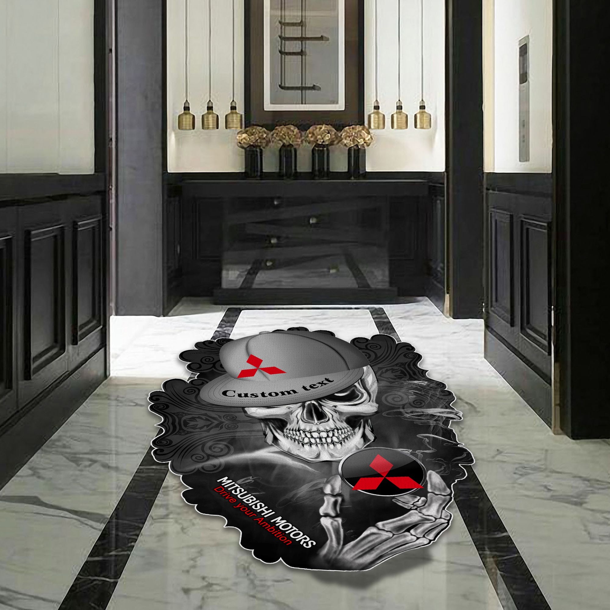 Mitsubishi Skull Shaped Luxurious Doormat, Rug Home Decor, Custom name