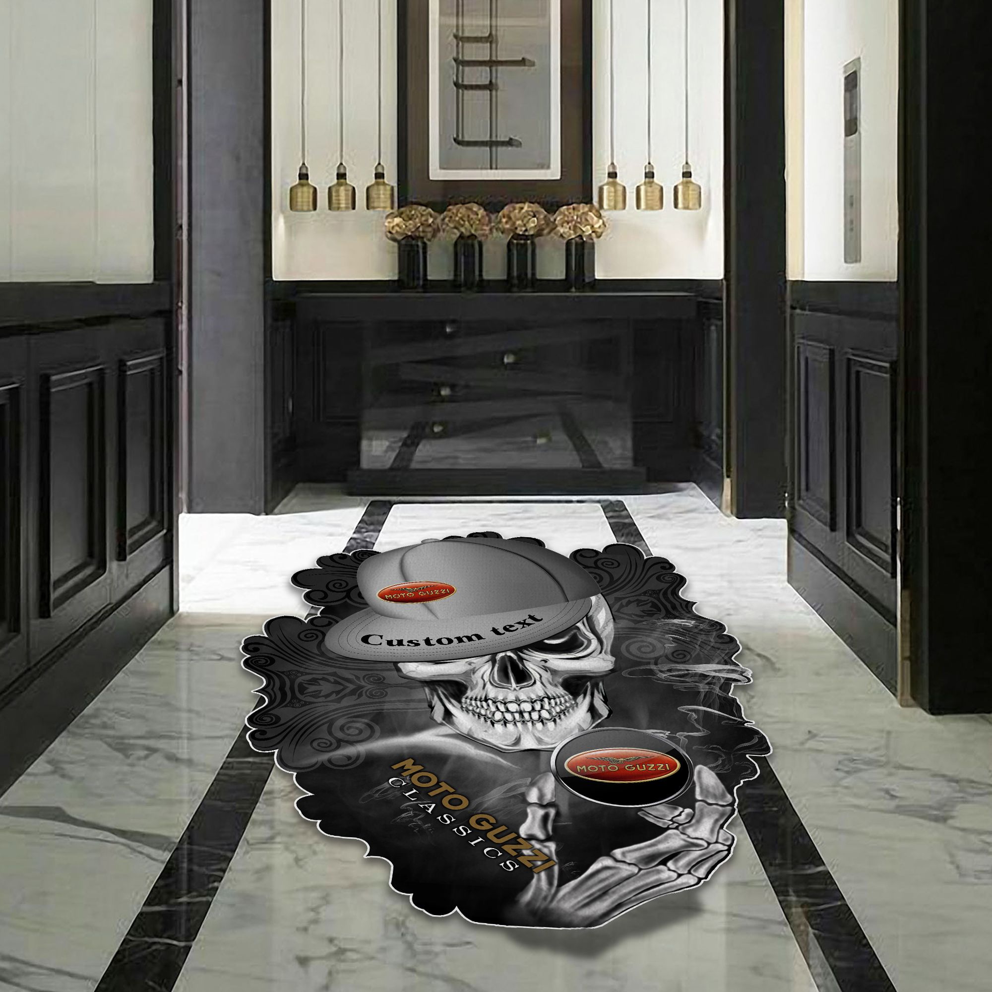 Moto Guzzi Skull Shaped Luxurious Doormat, Rug Home Decor, Custom name