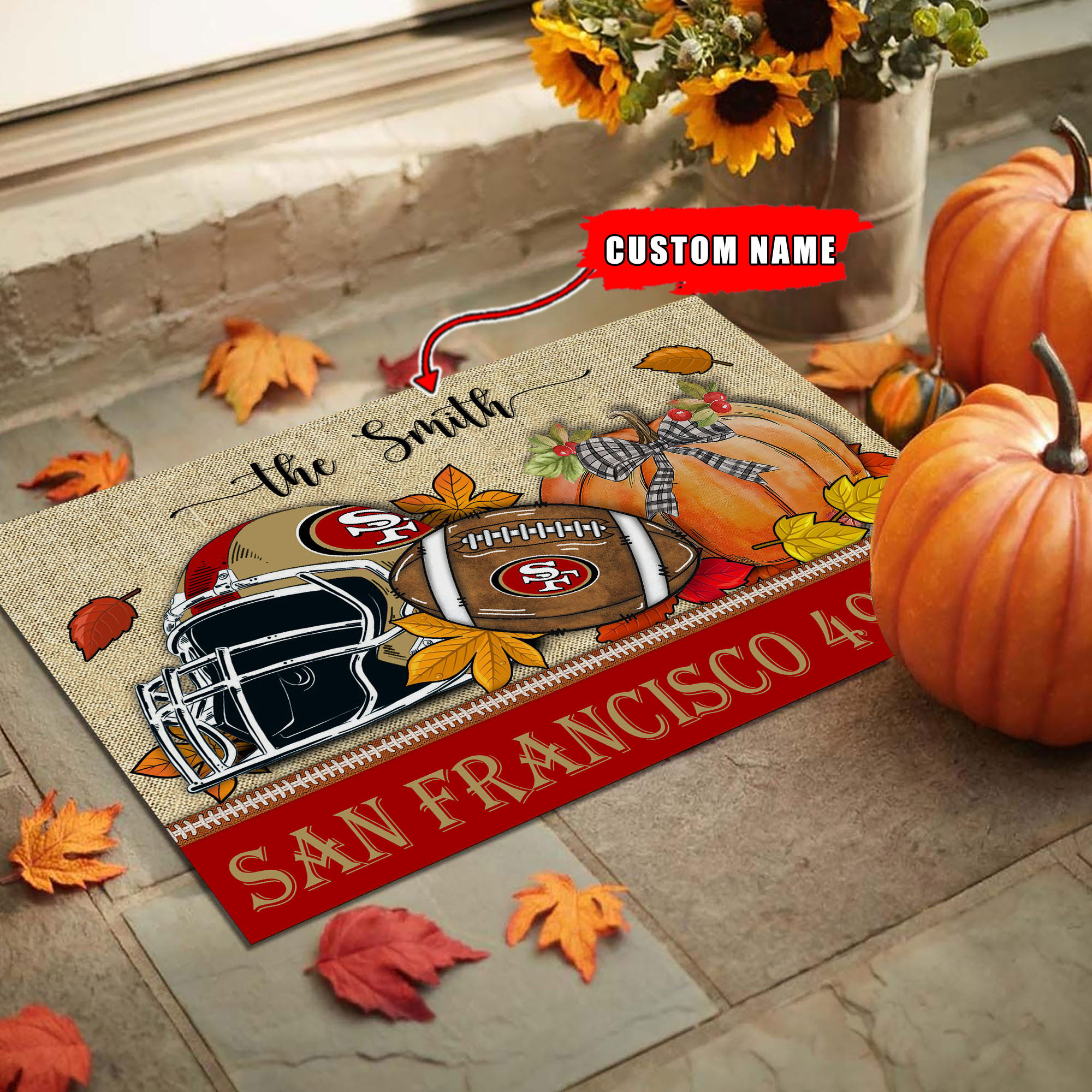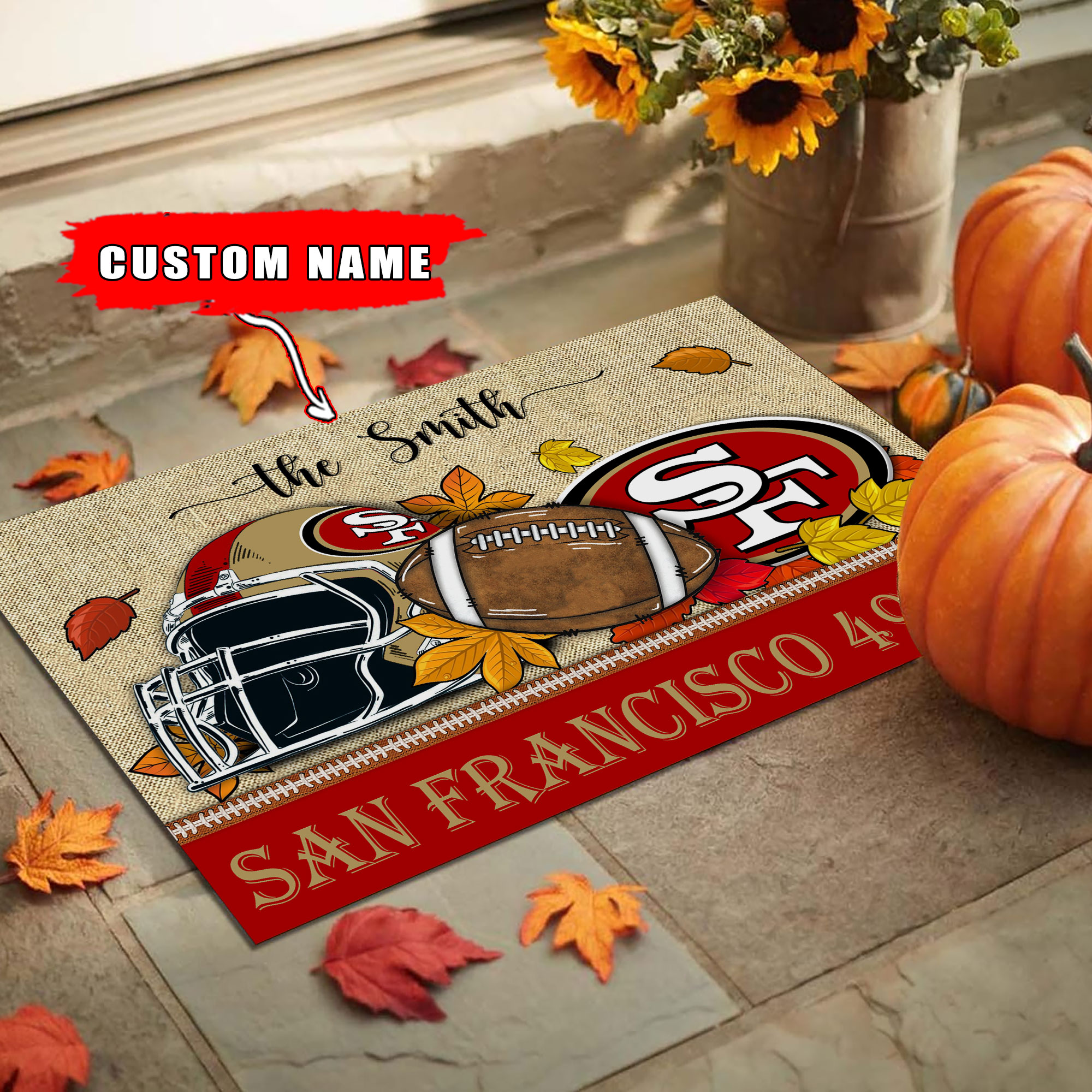 San Francisco 49ers Welcome Fall Football Doormat