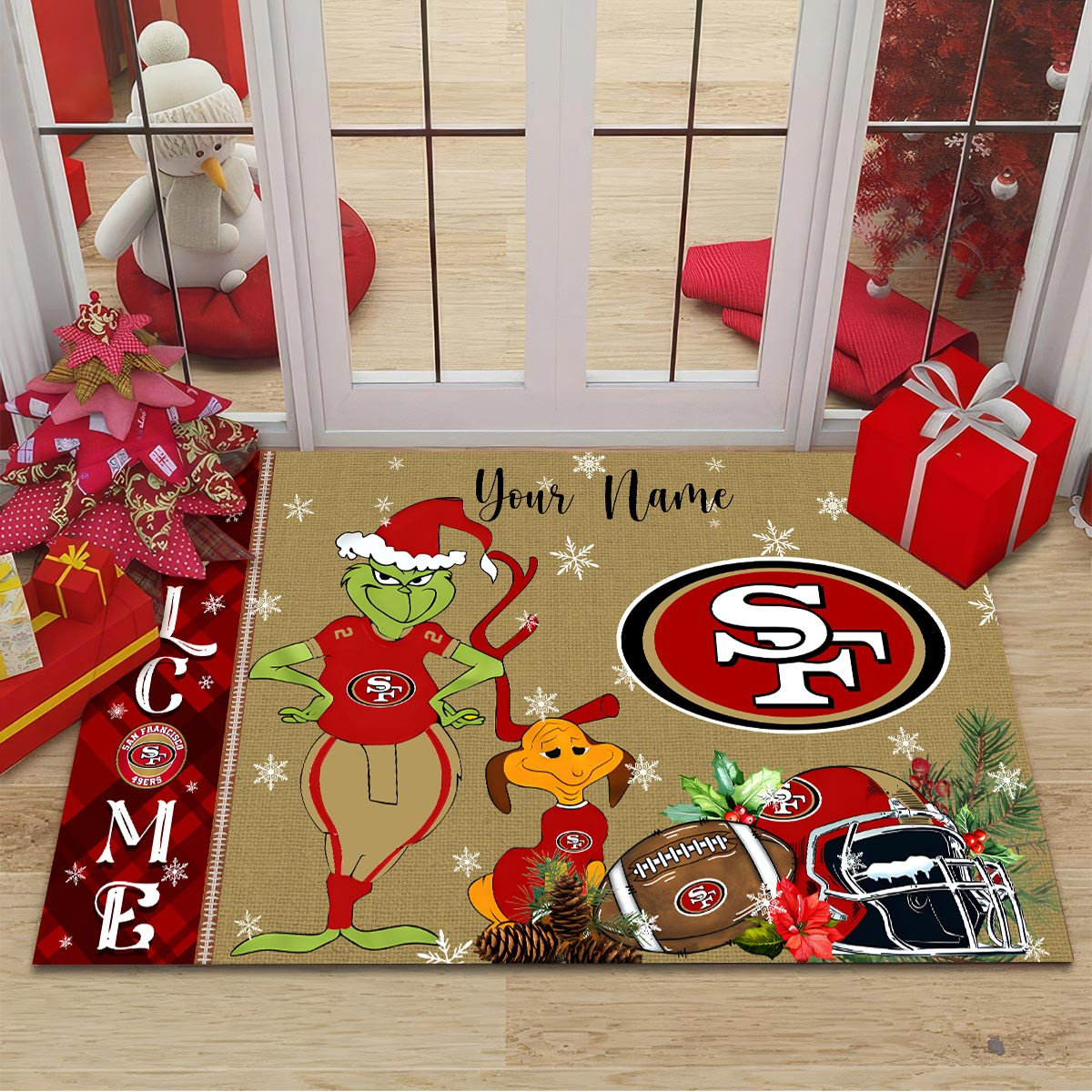 San Francisco 49ers Grinch Christmas Welcome Football Doormat
