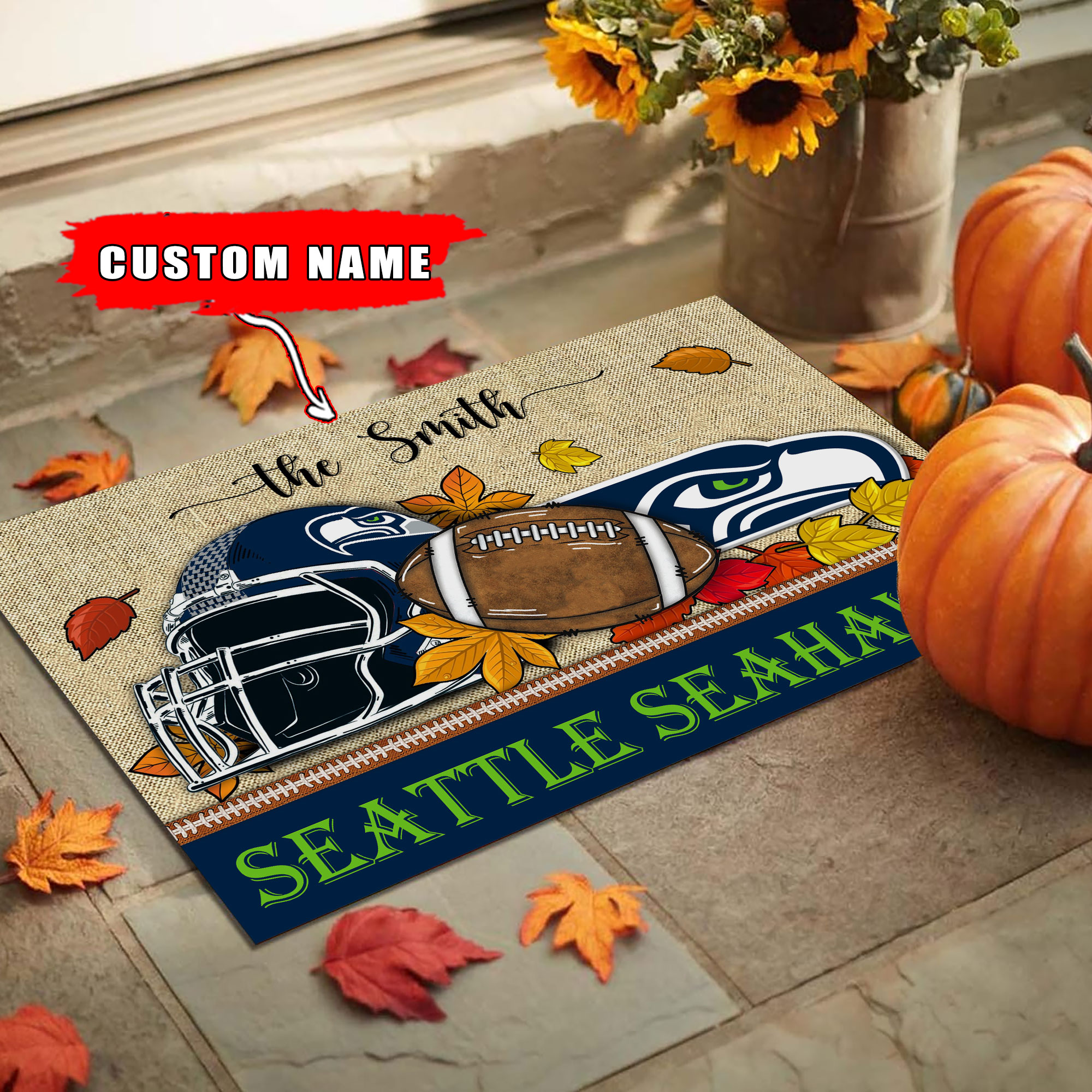 Seattle Seahawks Welcome Fall Football Doormat