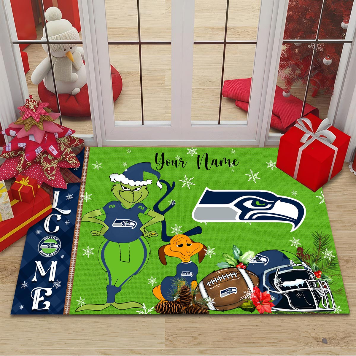 Seattle Seahawks Grinch Christmas Welcome Football Doormat