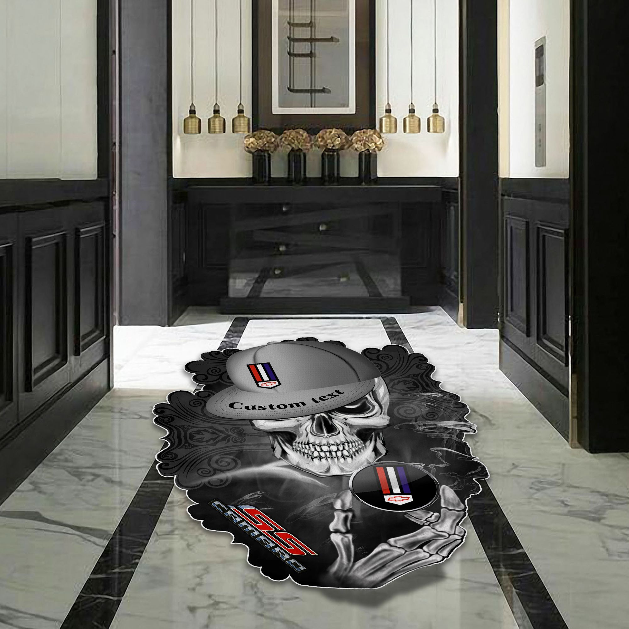 Camaro SS Skull Shaped Luxurious Doormat, Rug Home Decor, Custom name