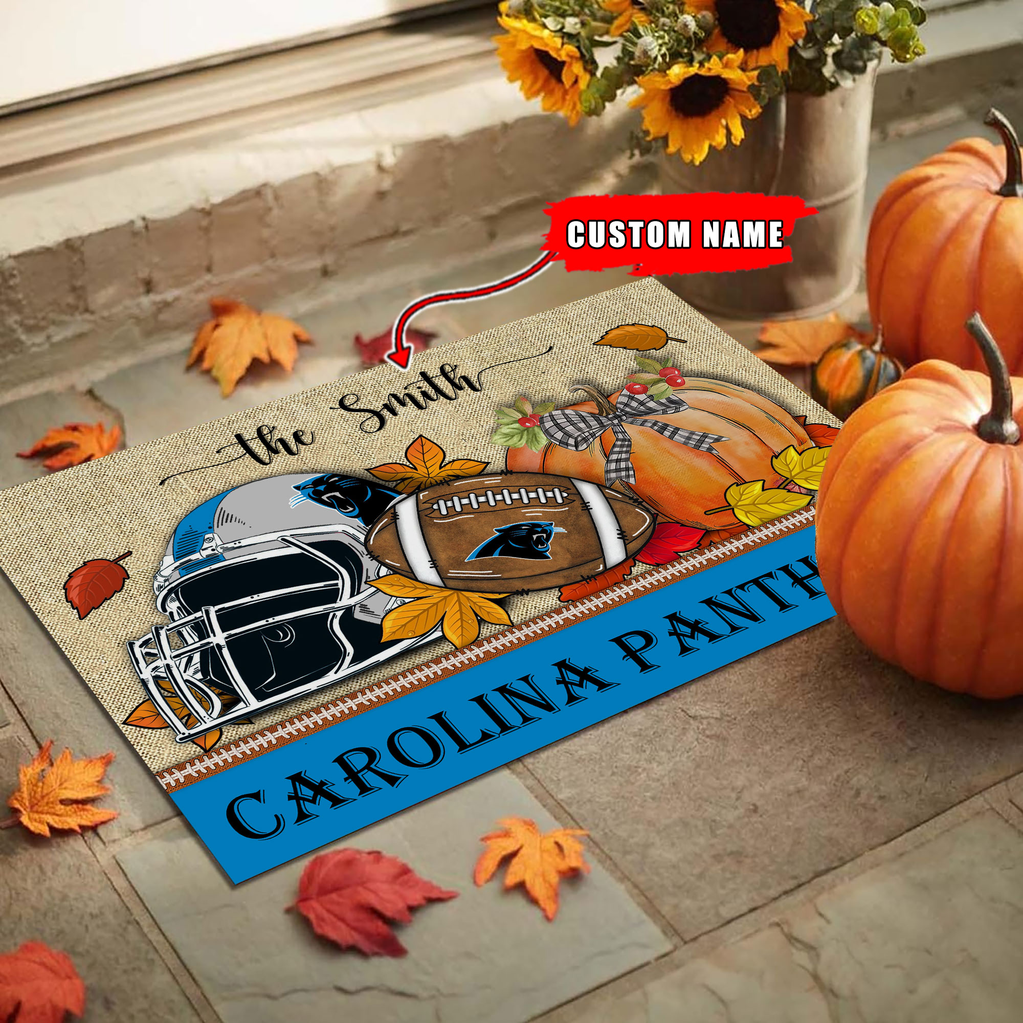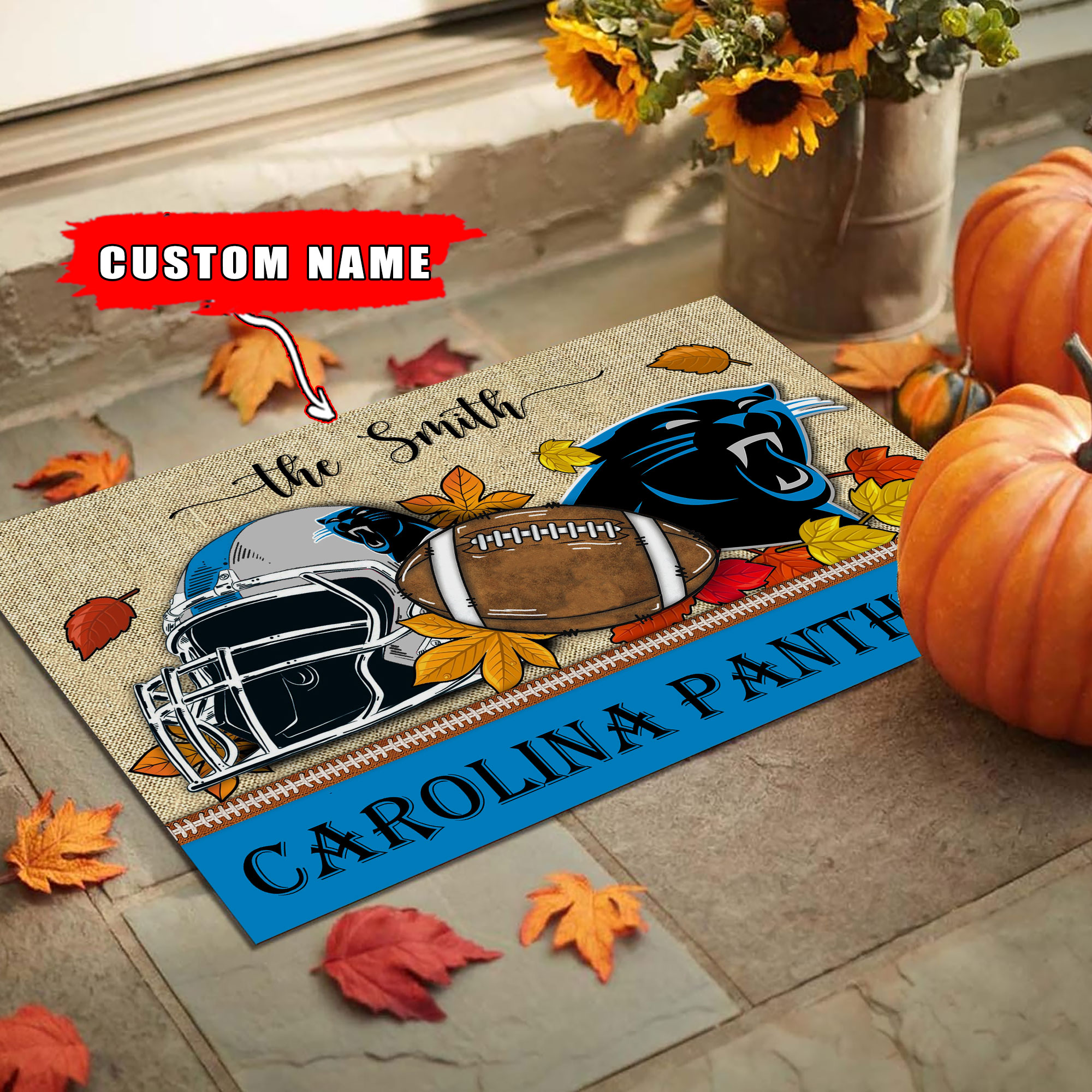 Carolina Panthers Fall Football Doormat