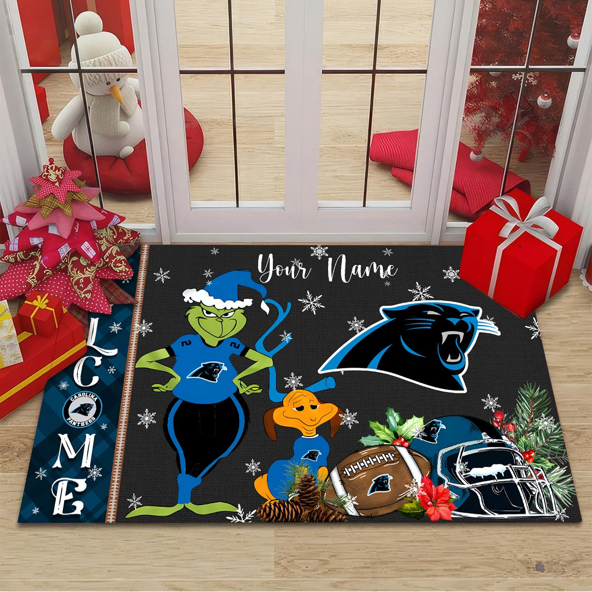 Carolina Panthers Grinch Christmas Welcome Football Doormat