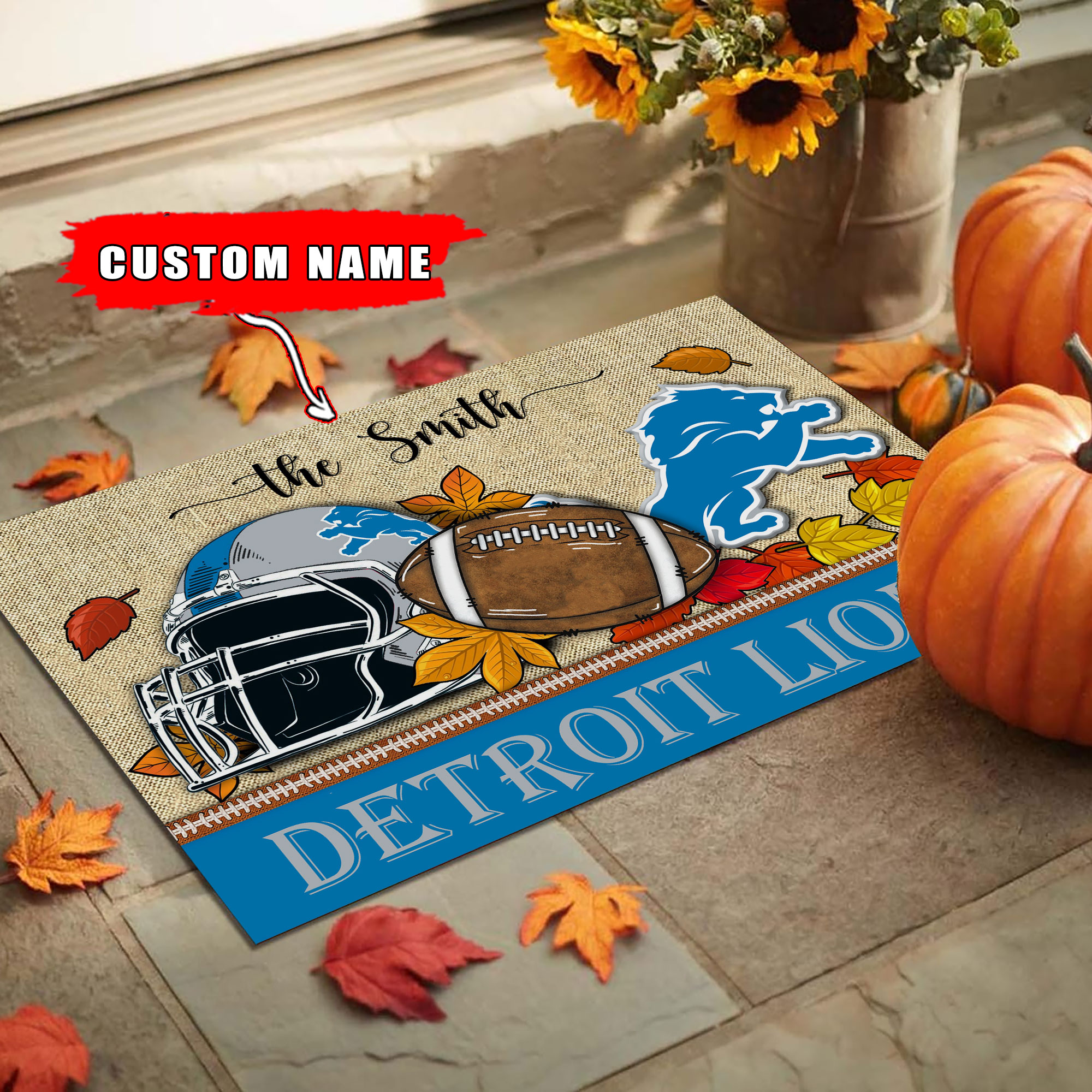 Detroit Lions Welcome Fall Football Doormat