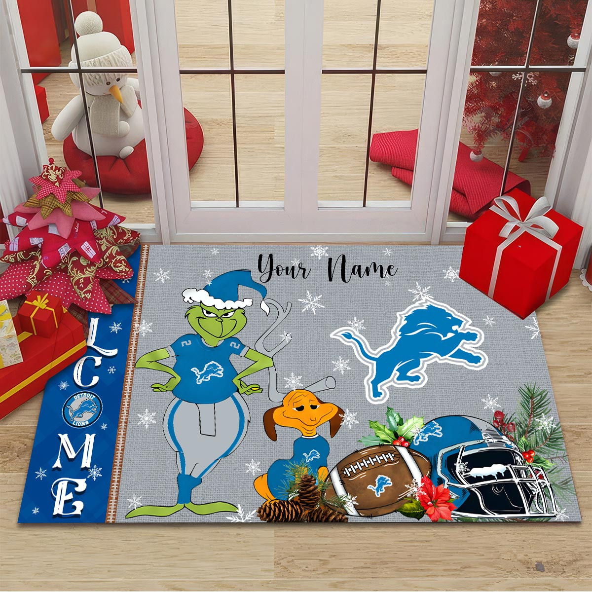 Detroit Lions Grinch Christmas Welcome Football Doormat