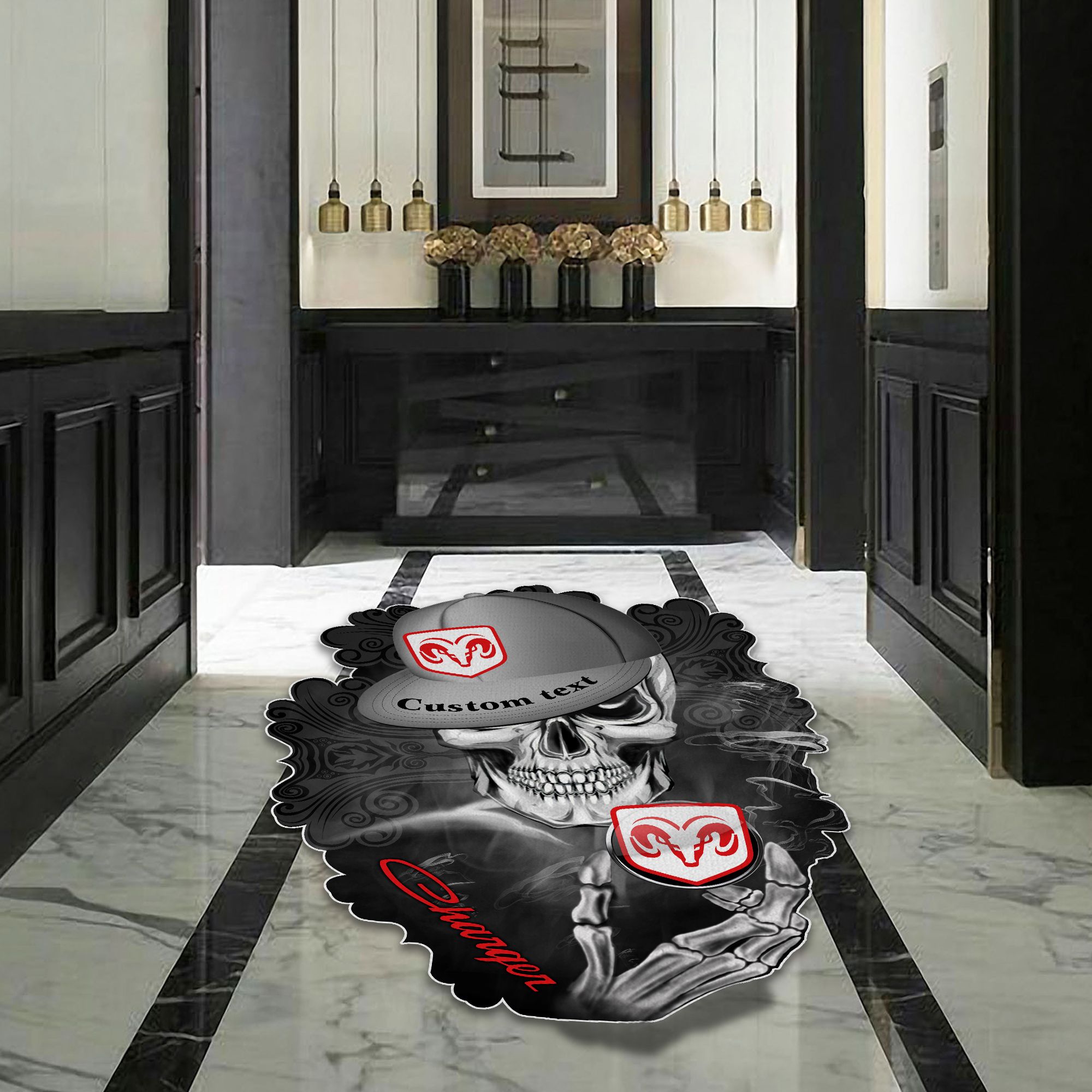 Dodge Charger Skull Shaped Luxurious Doormat, Rug Home Decor, Custom name