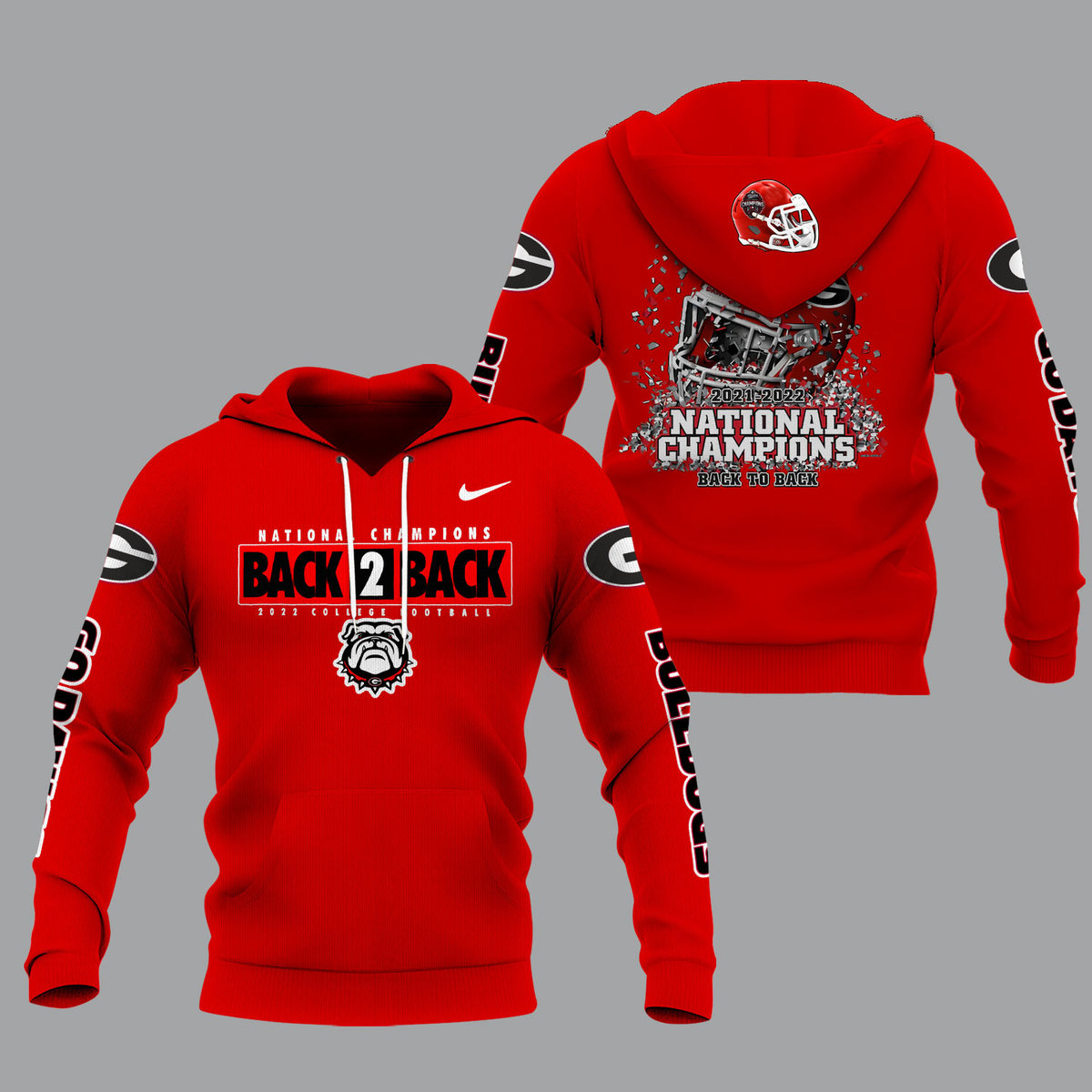 Georgia Bulldogs 2022 National Champions Back To Back Red Shirts