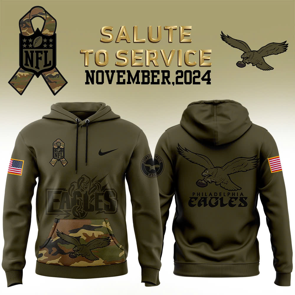 Philadelphia Eagles Camo Salute to Service Club Fleece Pullover Hoodie V4