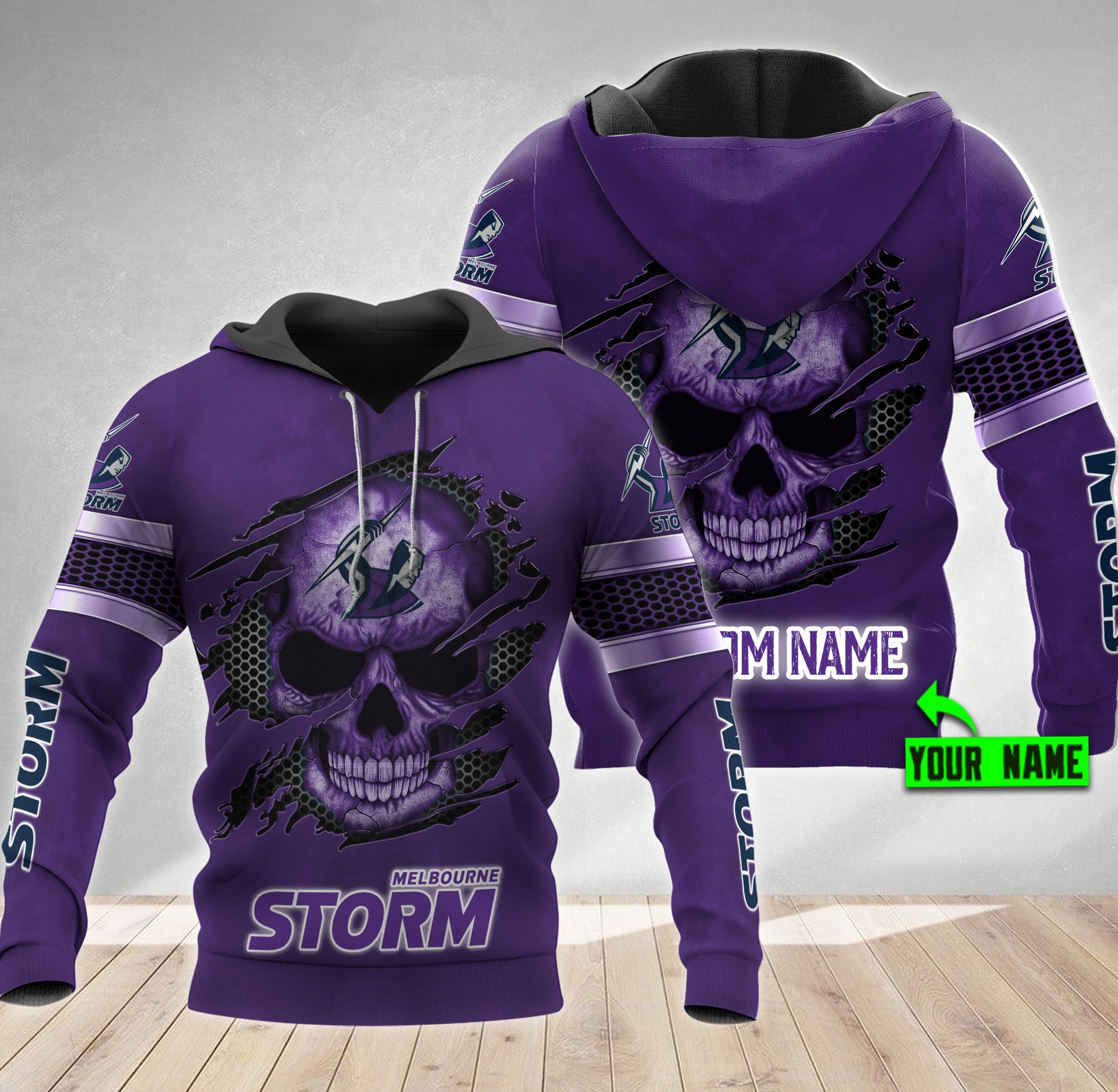 Personalized Melbourne Storm Nrl Skull Custom 3D All Over Print Hoodie