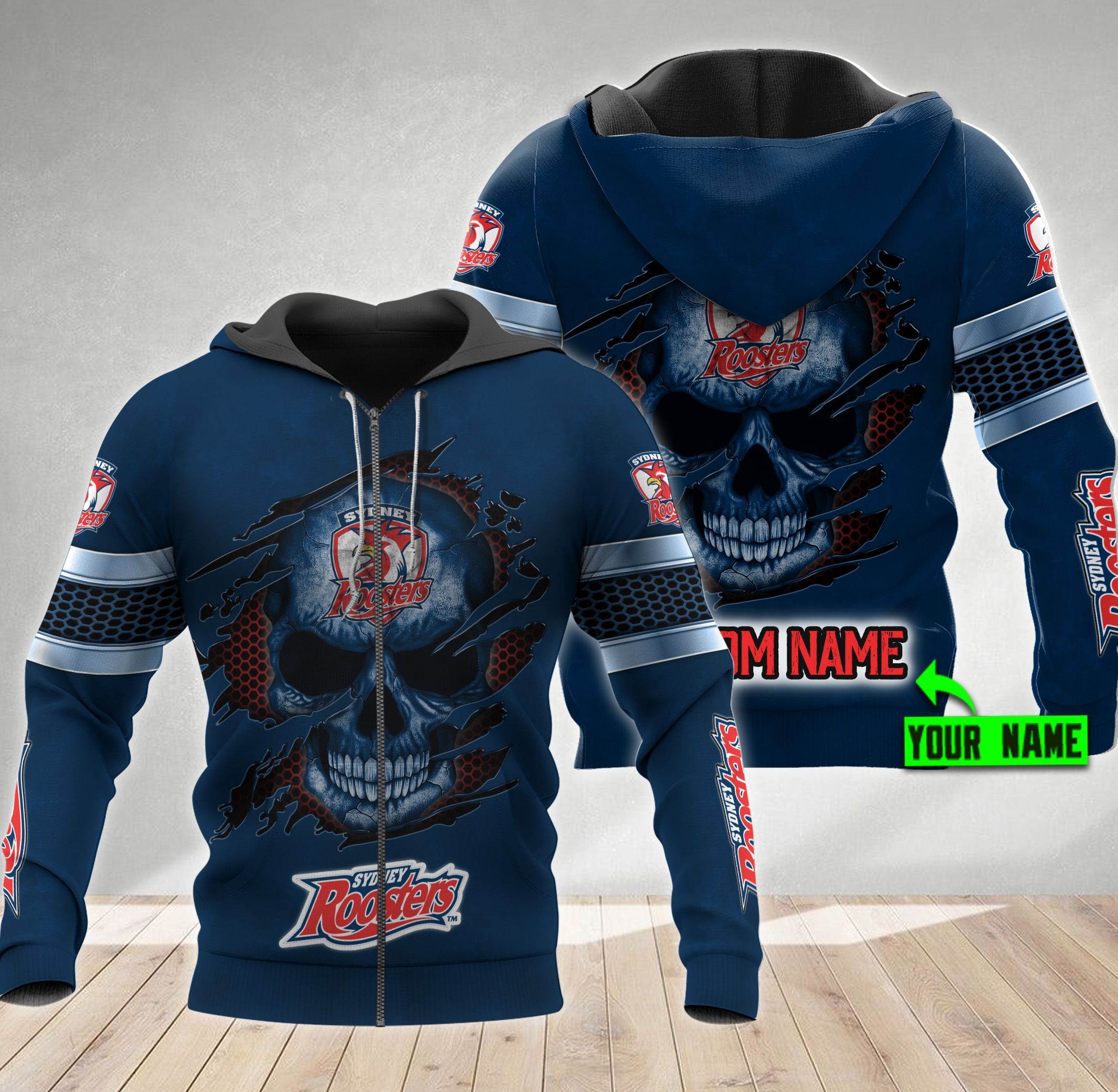 Personalized Sydney Roosters Hoodie With Nrl Skull Design Stand Out In The Crowd