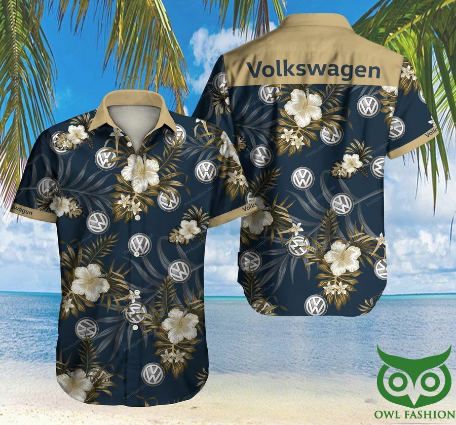 Volkswagen Car Gold Flowers Dark Blue Hawaiian Shirt