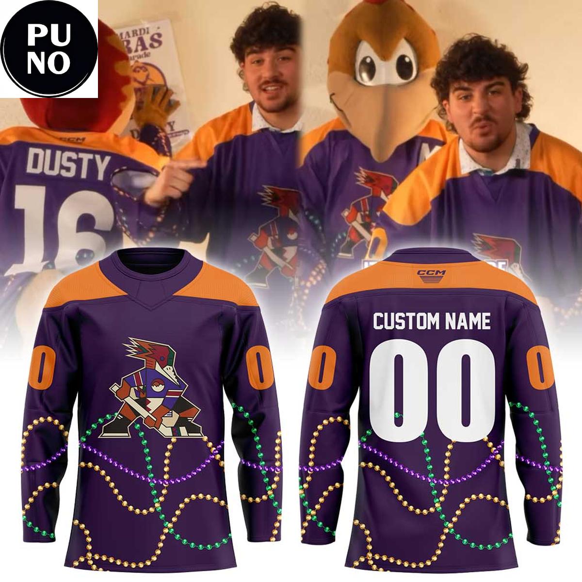 Tucson Roadrunners Mardi Gras Night 2026 Custom Name Hockey Jersey