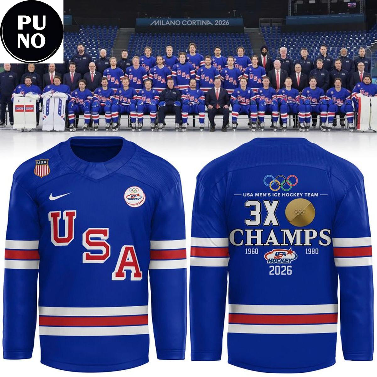 USA Mens Ice Hockey Team Olympic 2026 Champions 3X Hockey Jersey