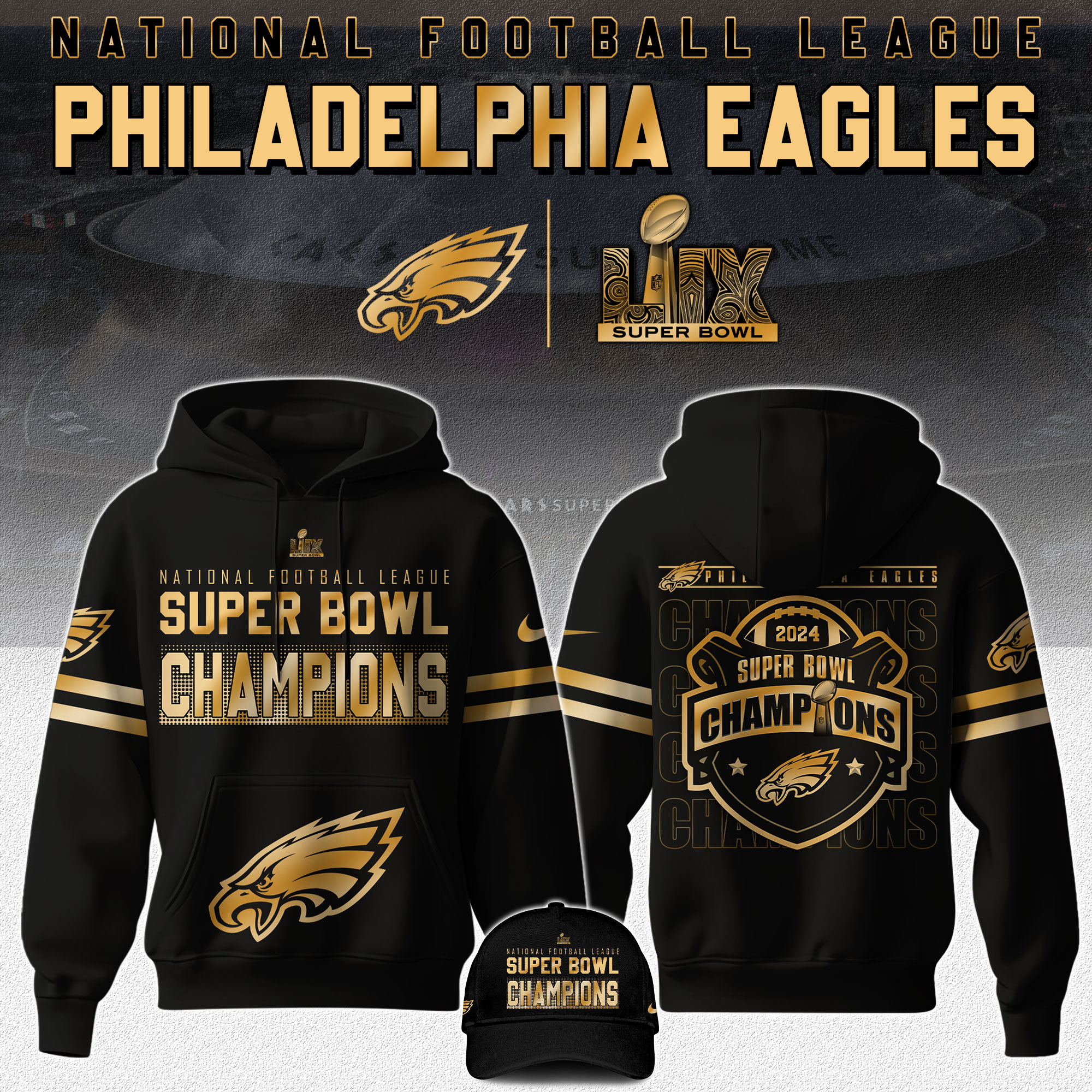 Philadelphia Eagles 2025 Super Bowl LIX Champions New Hoodie