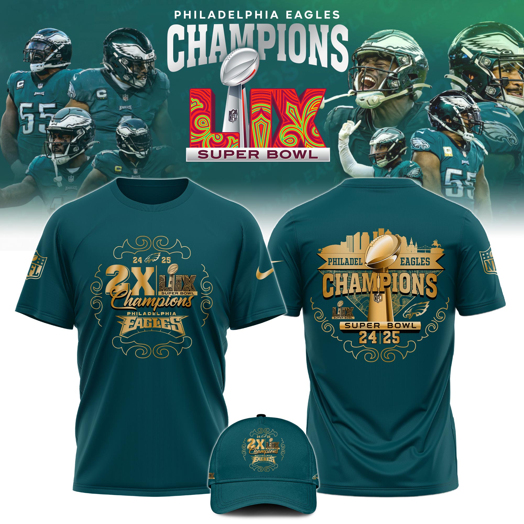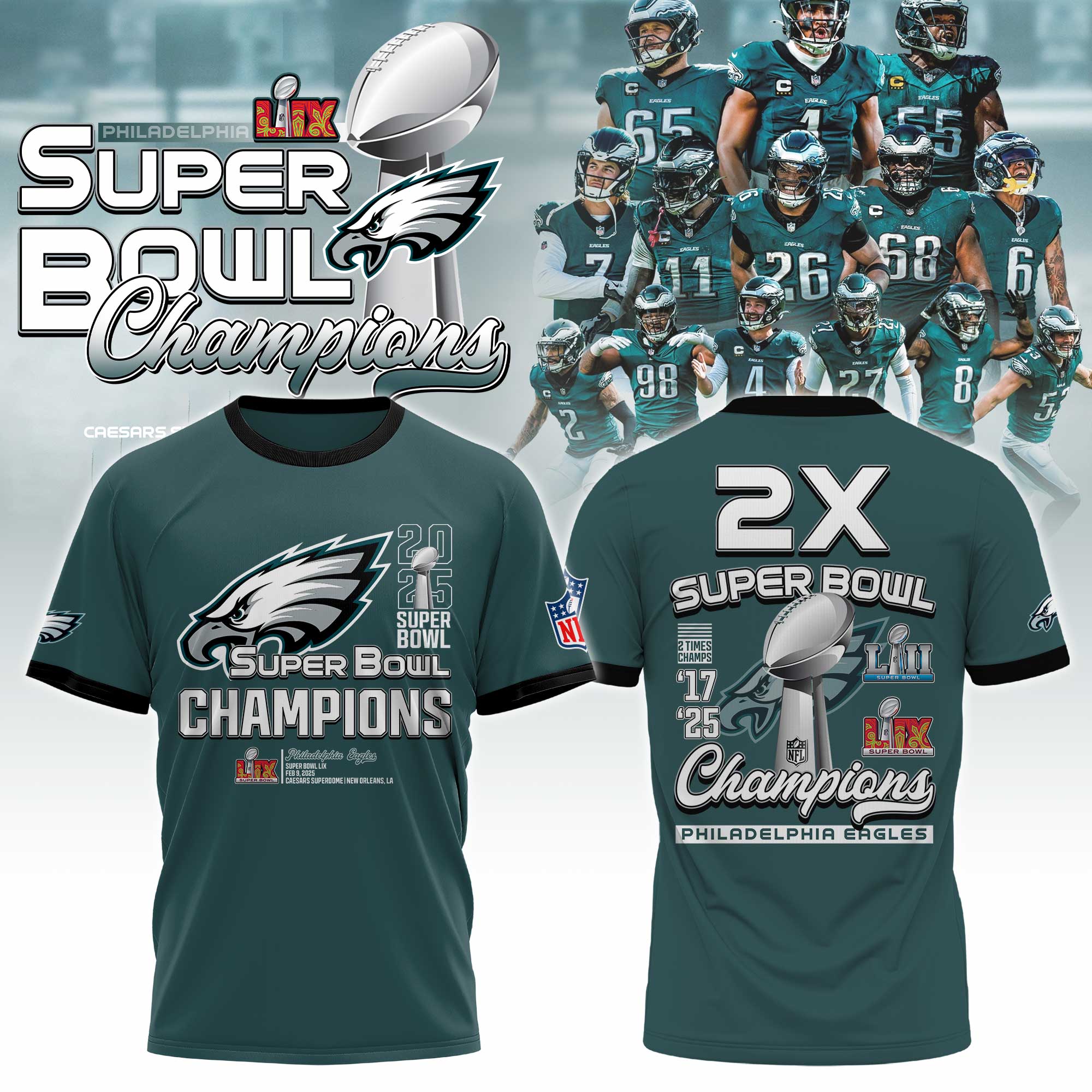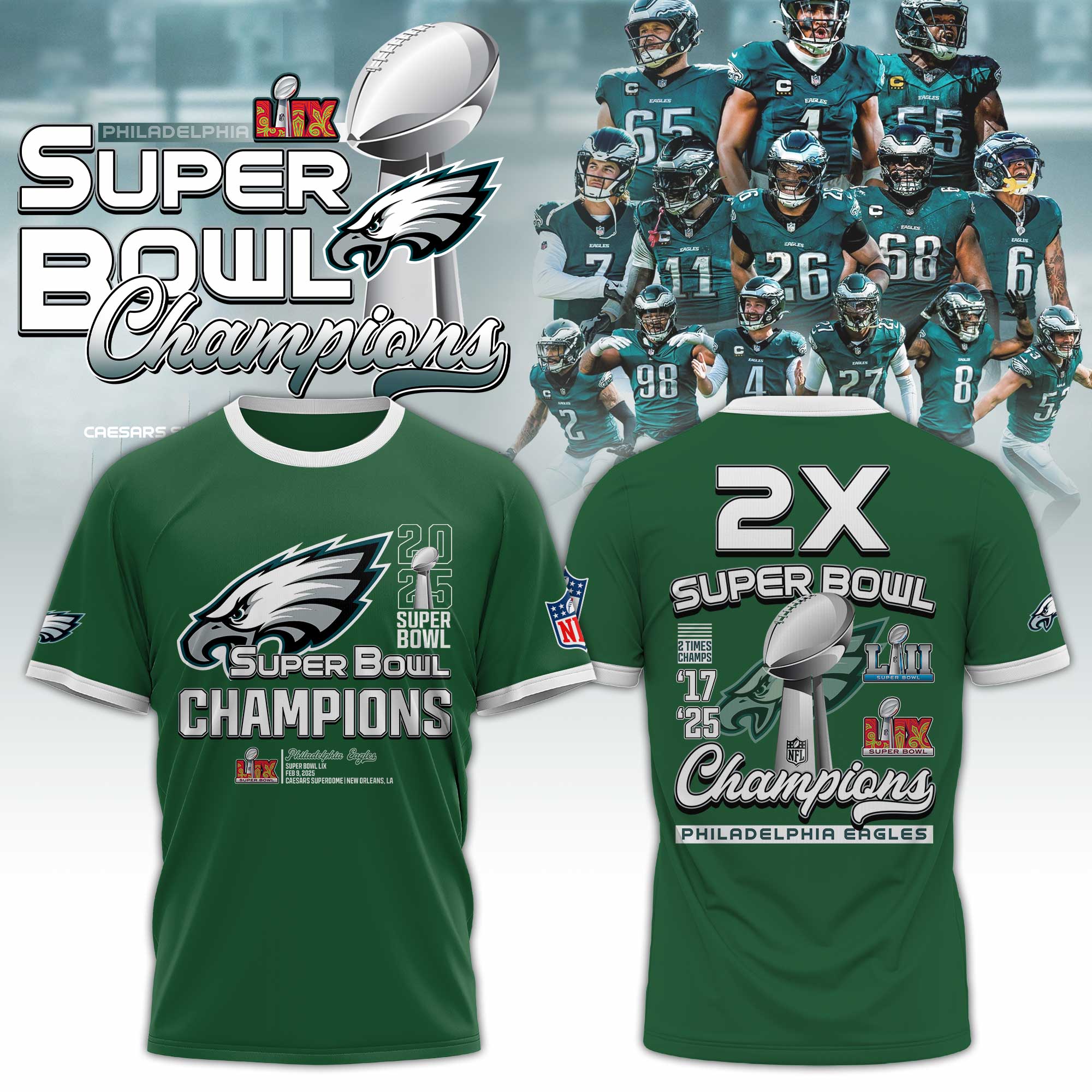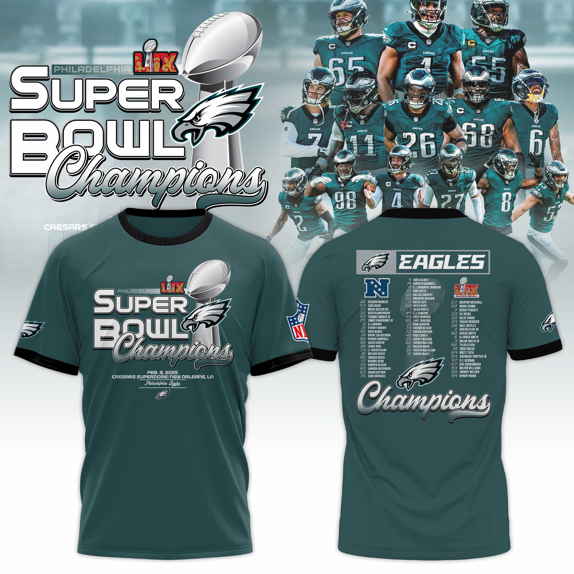 Philadelphia Eagles Super Bowl LIX Champions TShirts 2025