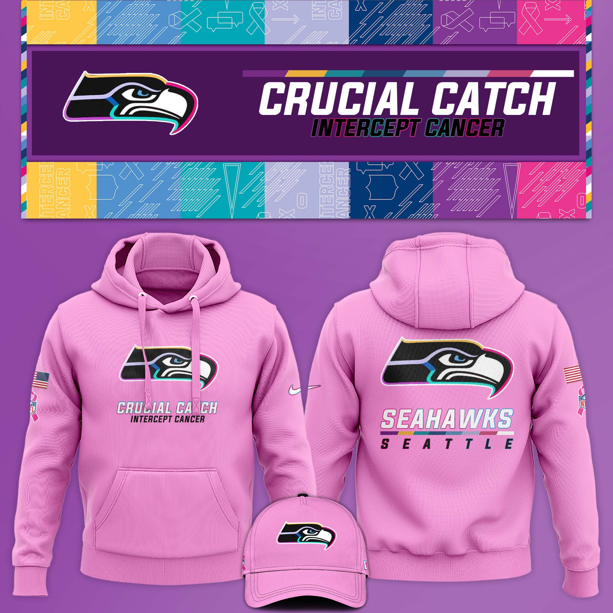 Seattle Seahawk Crucial Catch Hoodie V1 Pink
