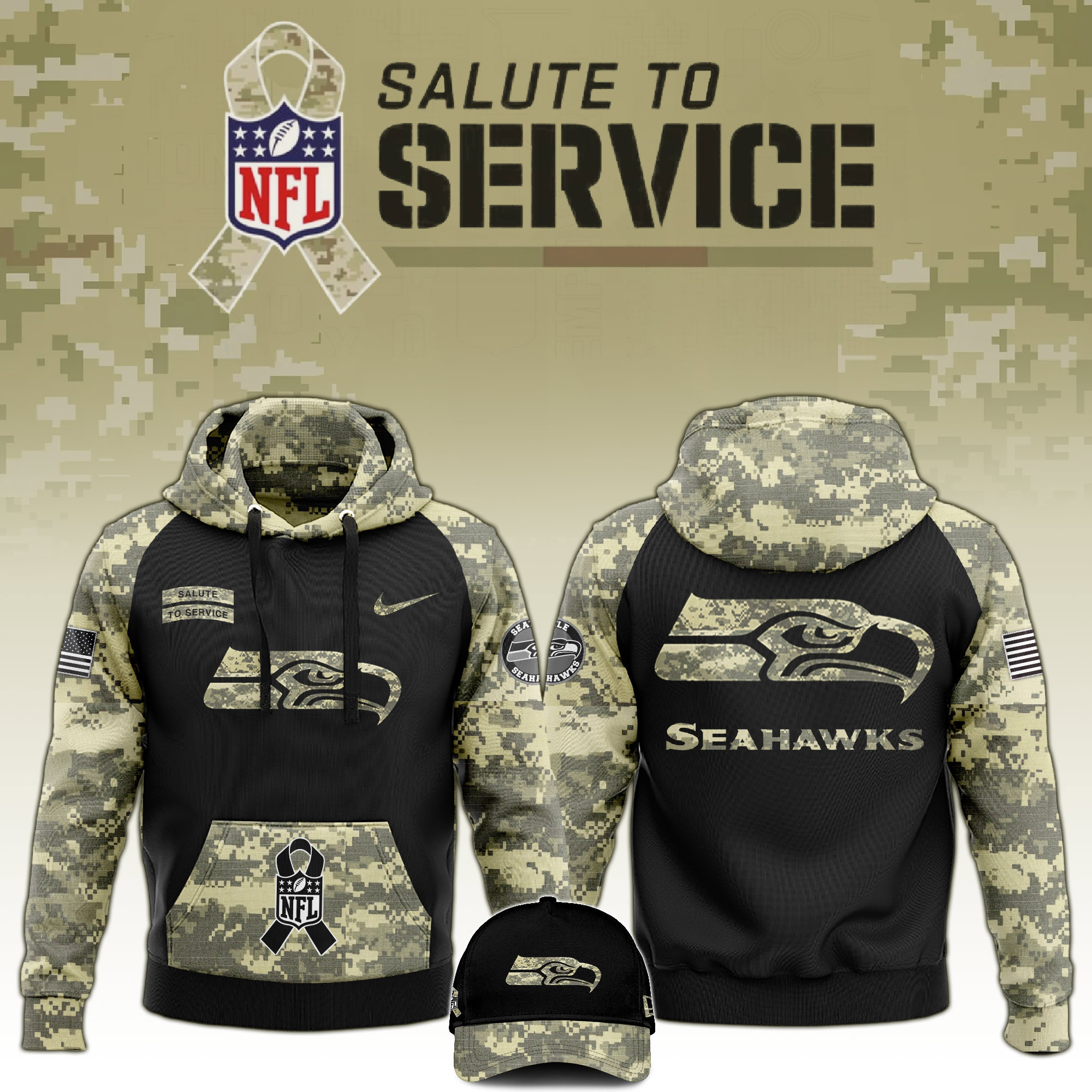 Seattle Seahawks Hoodie Camo Salute to Service Club