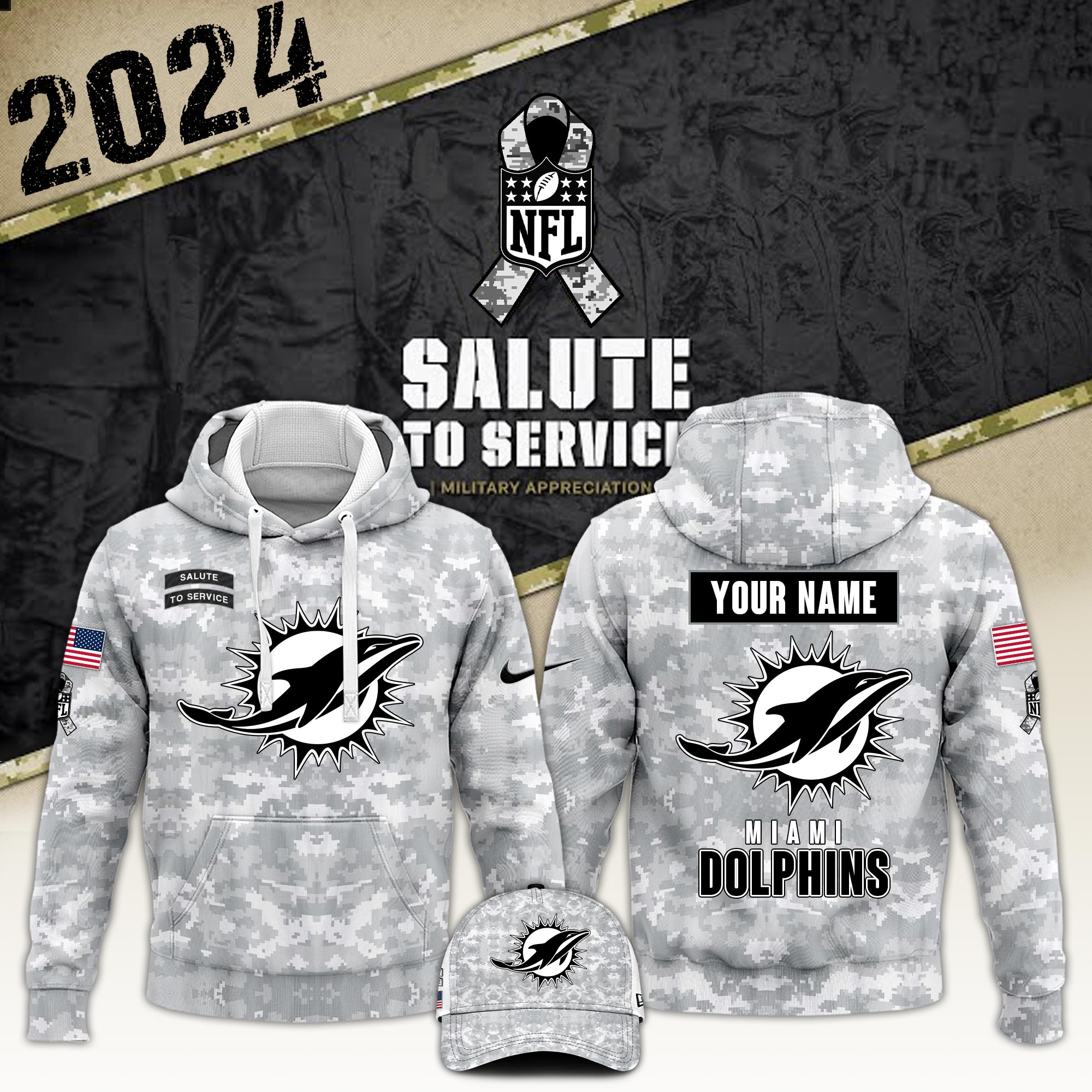 Miami Dolphins Hoodie Camo Salute to Service Club