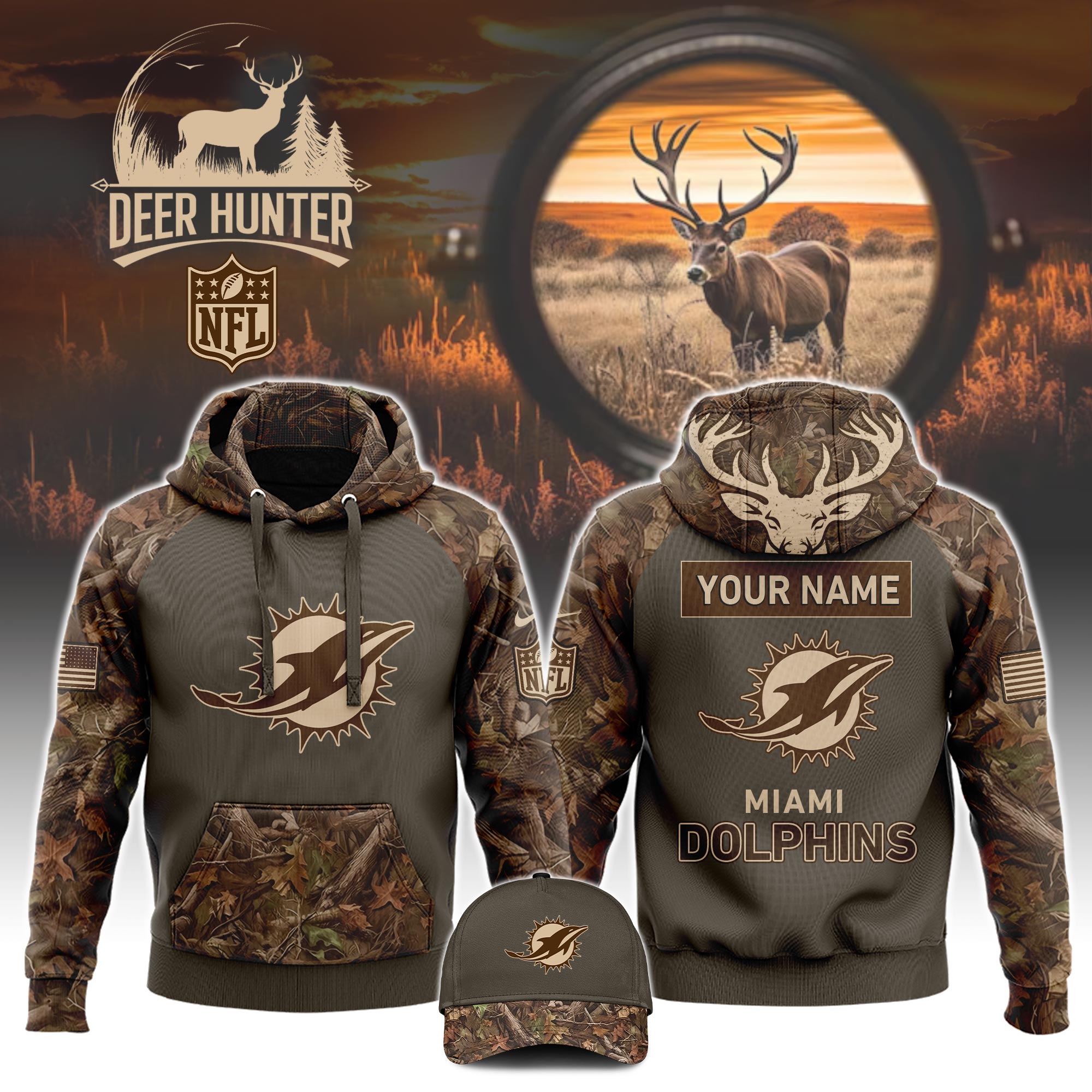 Miami Dolphins x Hunting Hoodie s V2