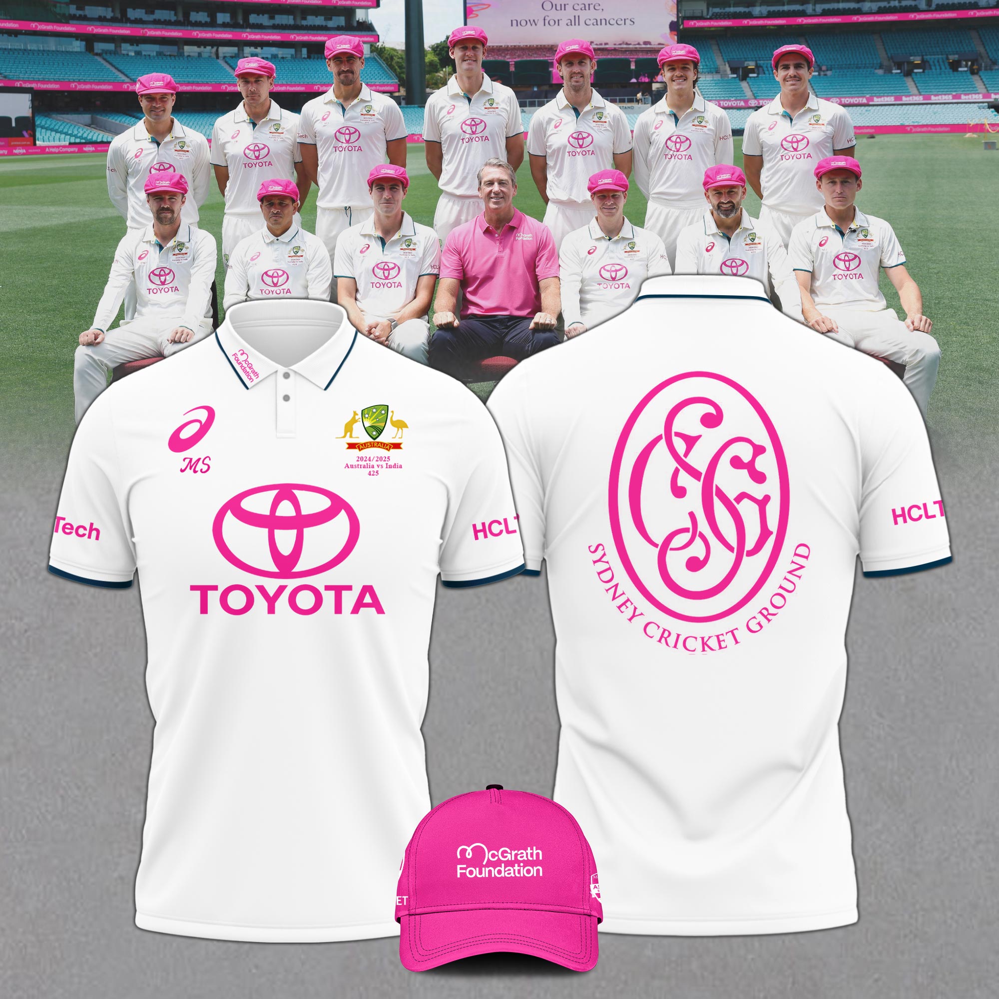Cricket Team Australia National Shirt Pink Test Breast Cancer Glenn McGrath