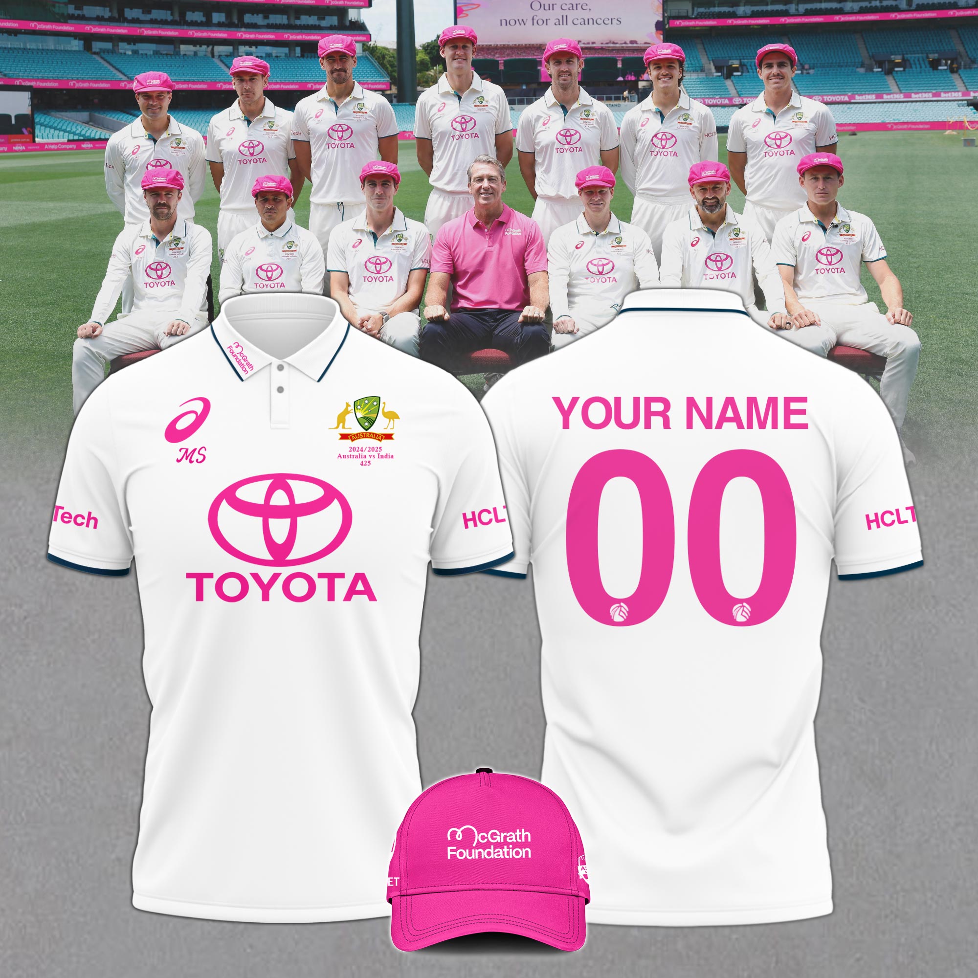 Cricket Team Australia National Shirt Pink Polo Breast Cancer Glenn McGrath v3 CUSTOM NAME NUMBER