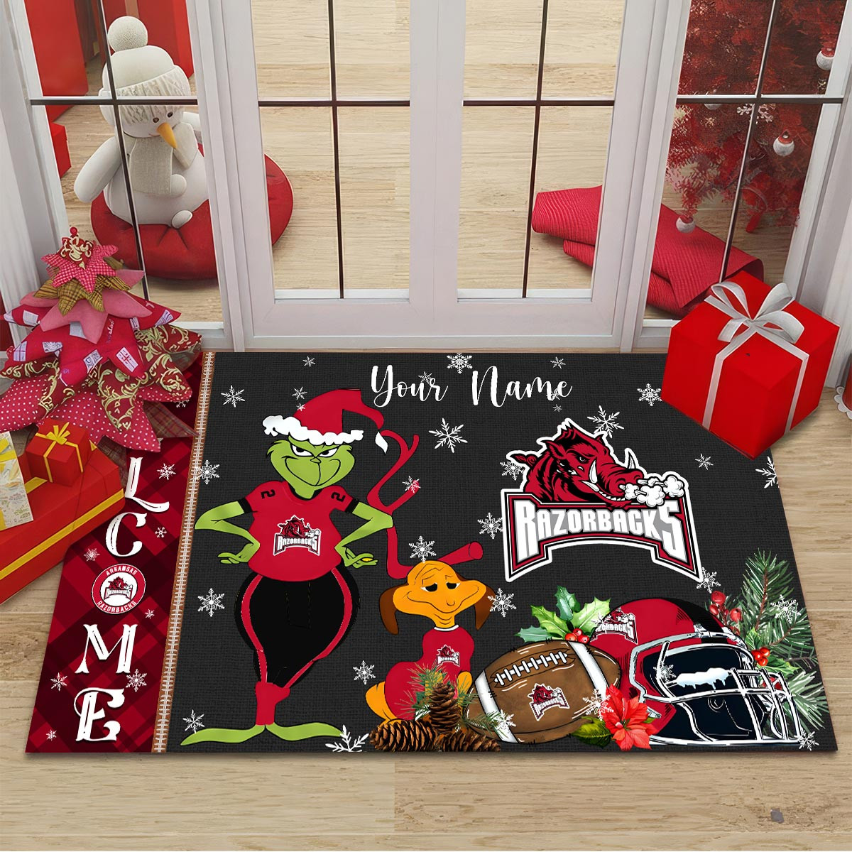 Arkansas Razorbacks Grinch Christmas Welcome Football Doormat
