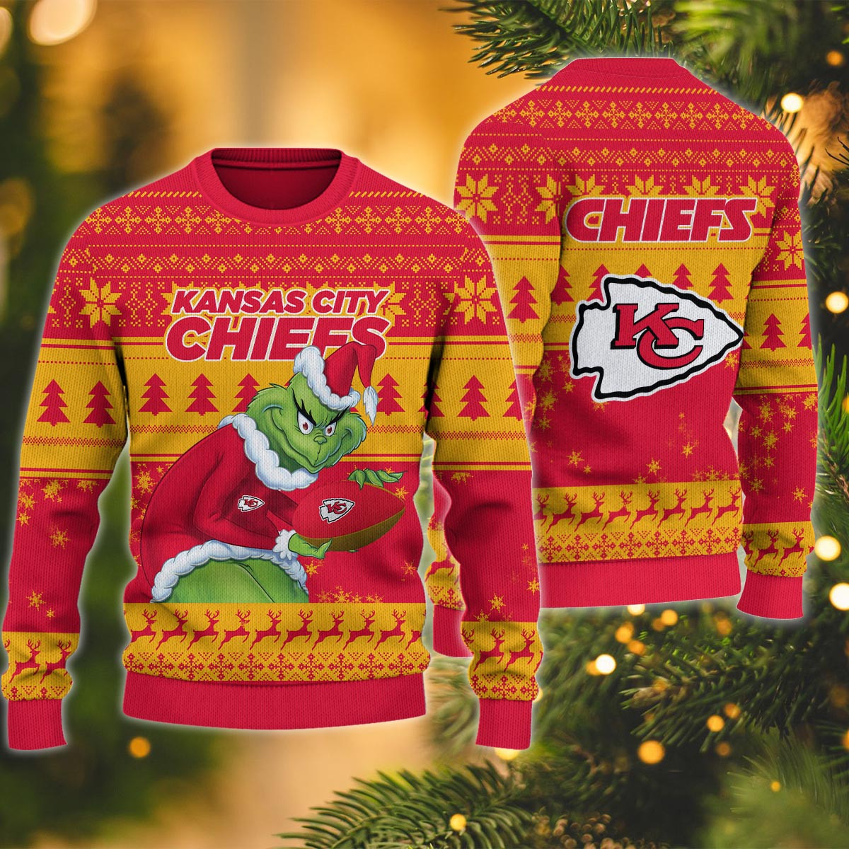 Kansas City Chiefs Grinch Ugly Christmas Sweater
