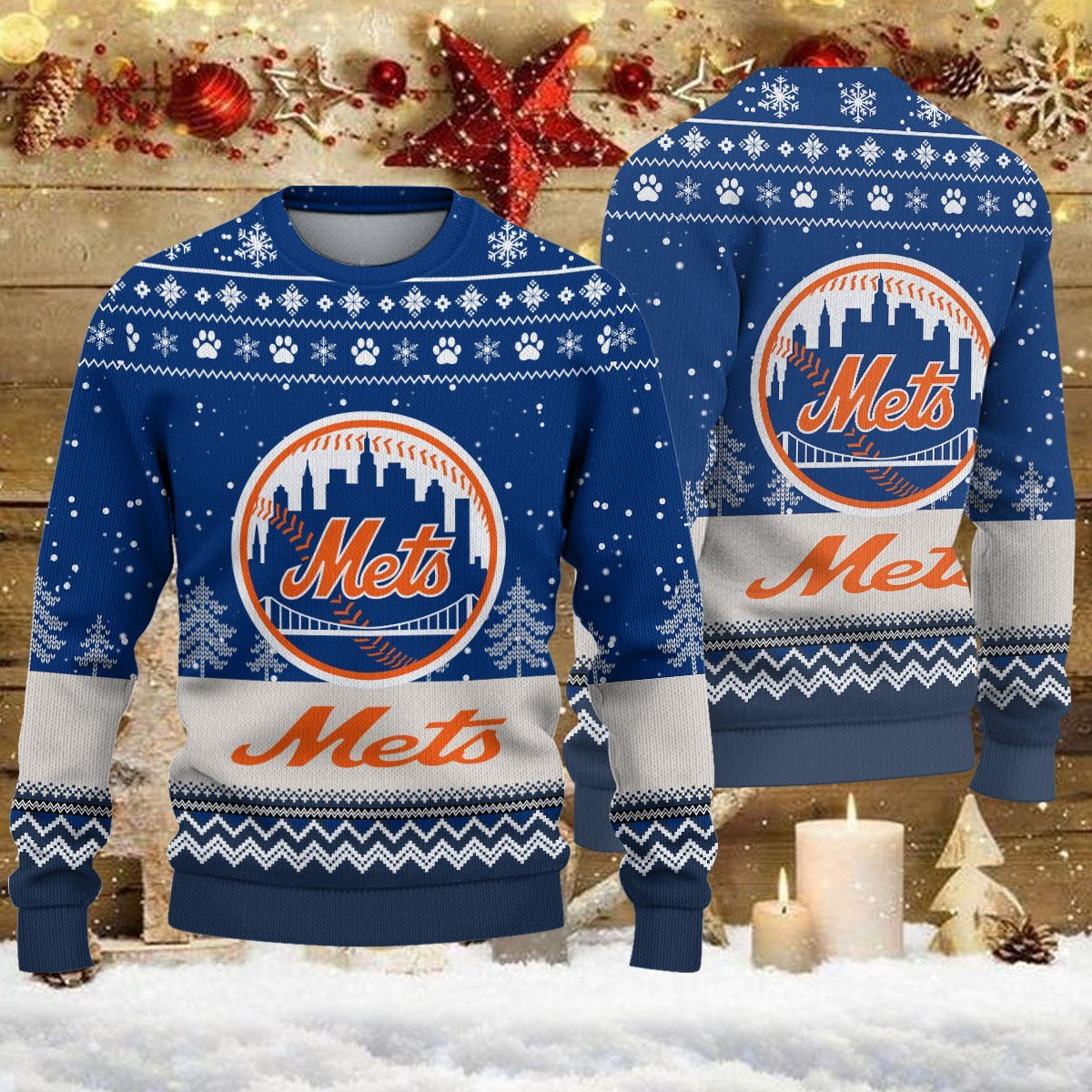 New York Mets Logo Christmas Wool Sweater