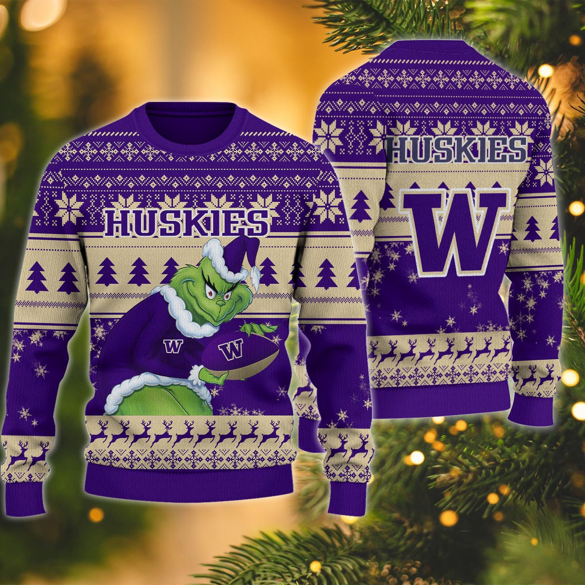 Washington Huskies Grinch Ugly Christmas Sweater