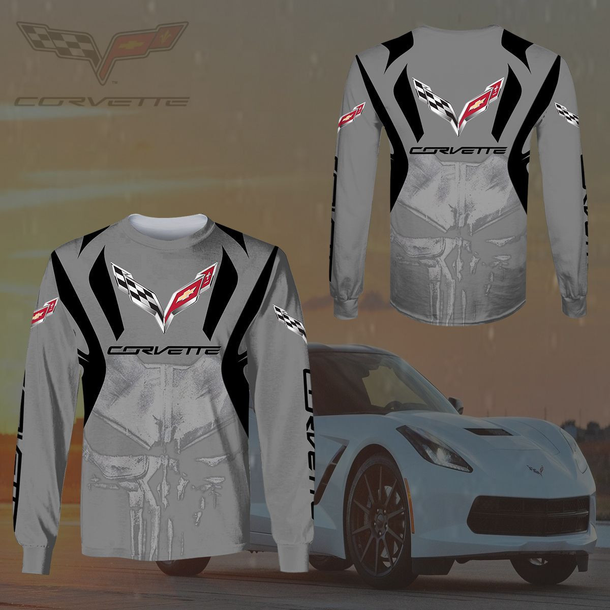 3D All Over Printed Chevrolet Corvette Shirts Ver 1 (Grey)