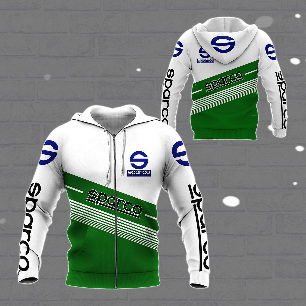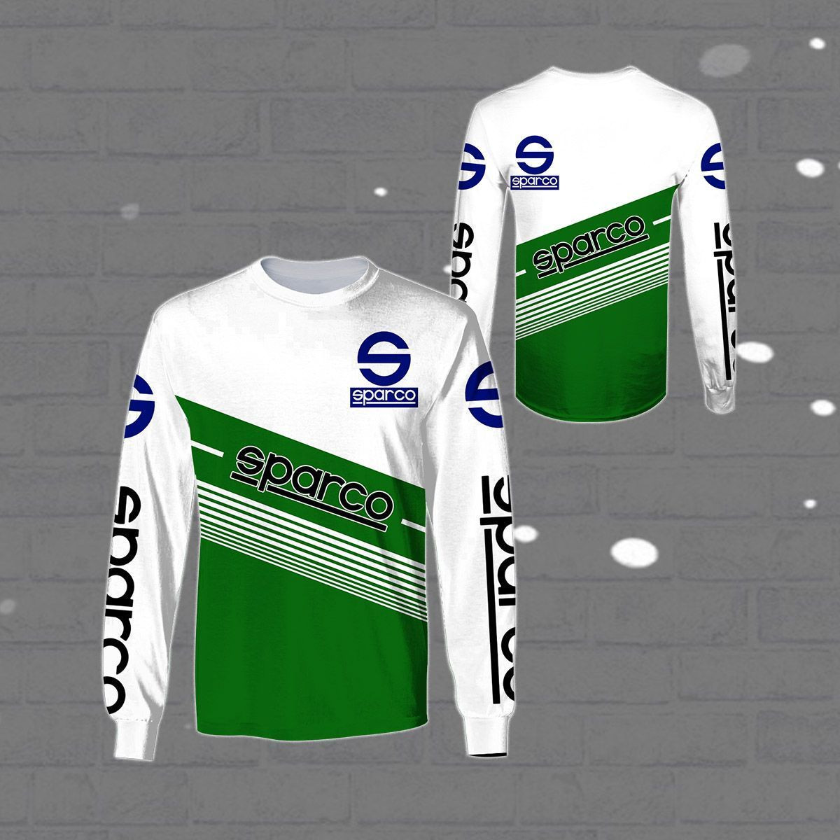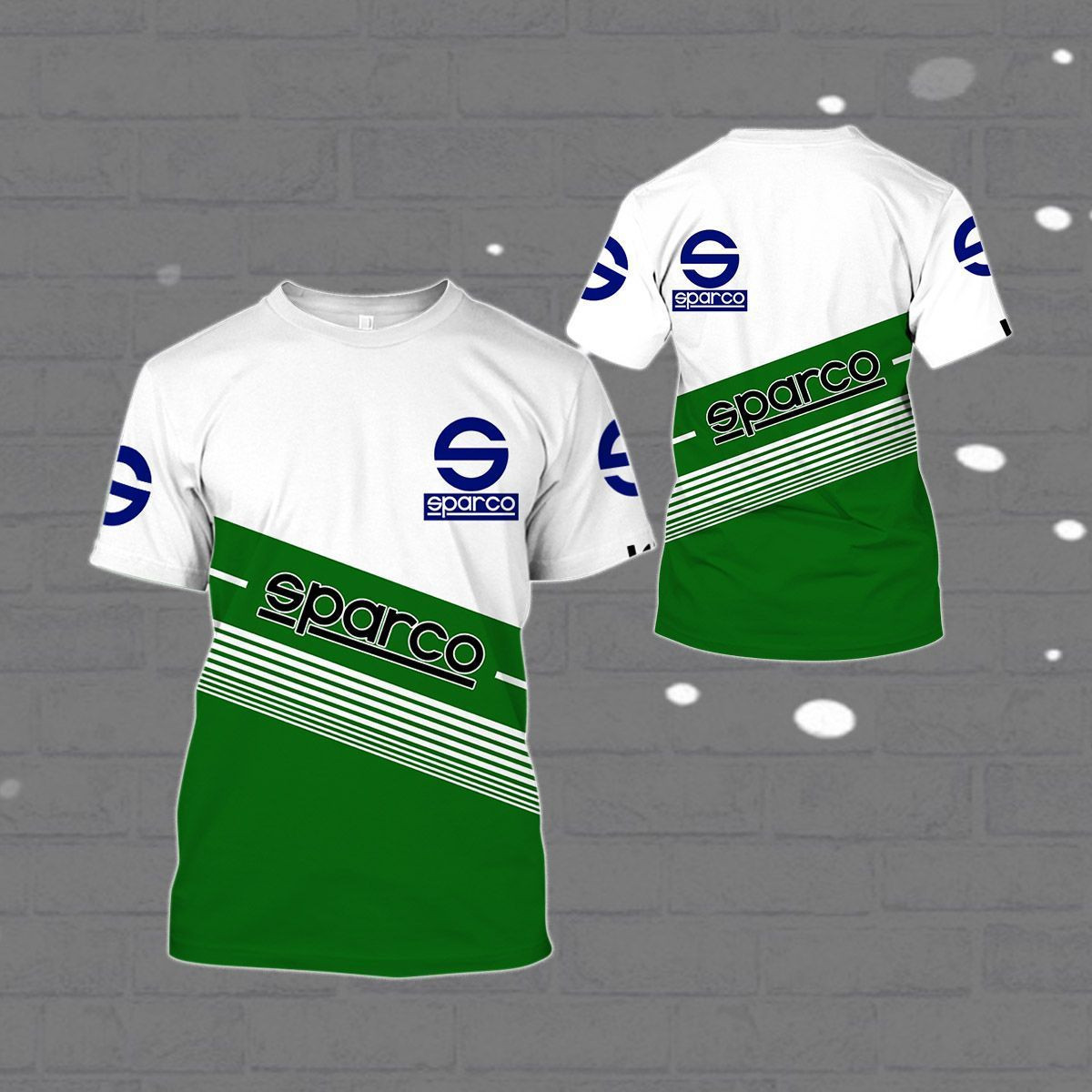 3D All Over Printed Sparco Shirts Ver1 (Green&White)