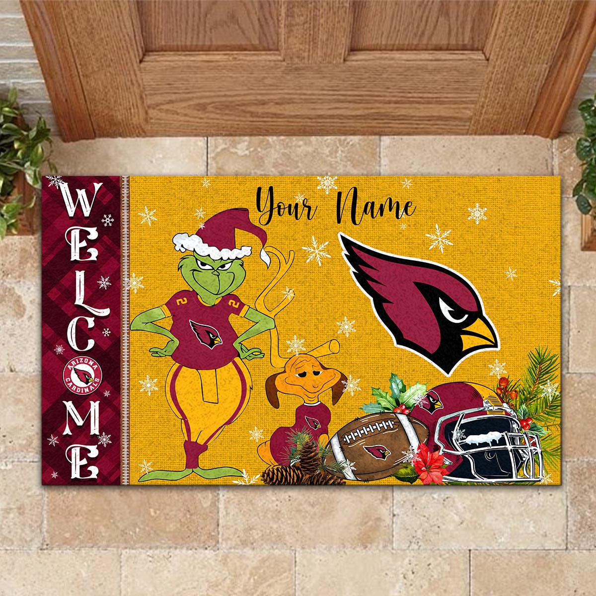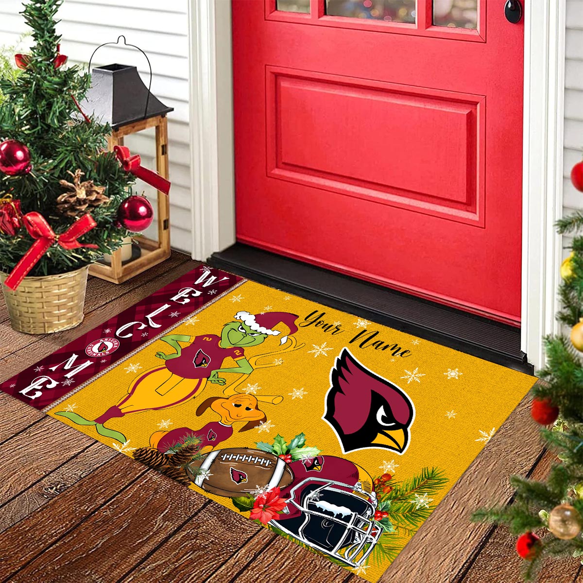 Arizona Cardinals Grinch Christmas Welcome Football Doormat