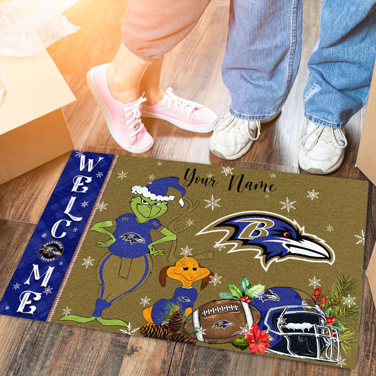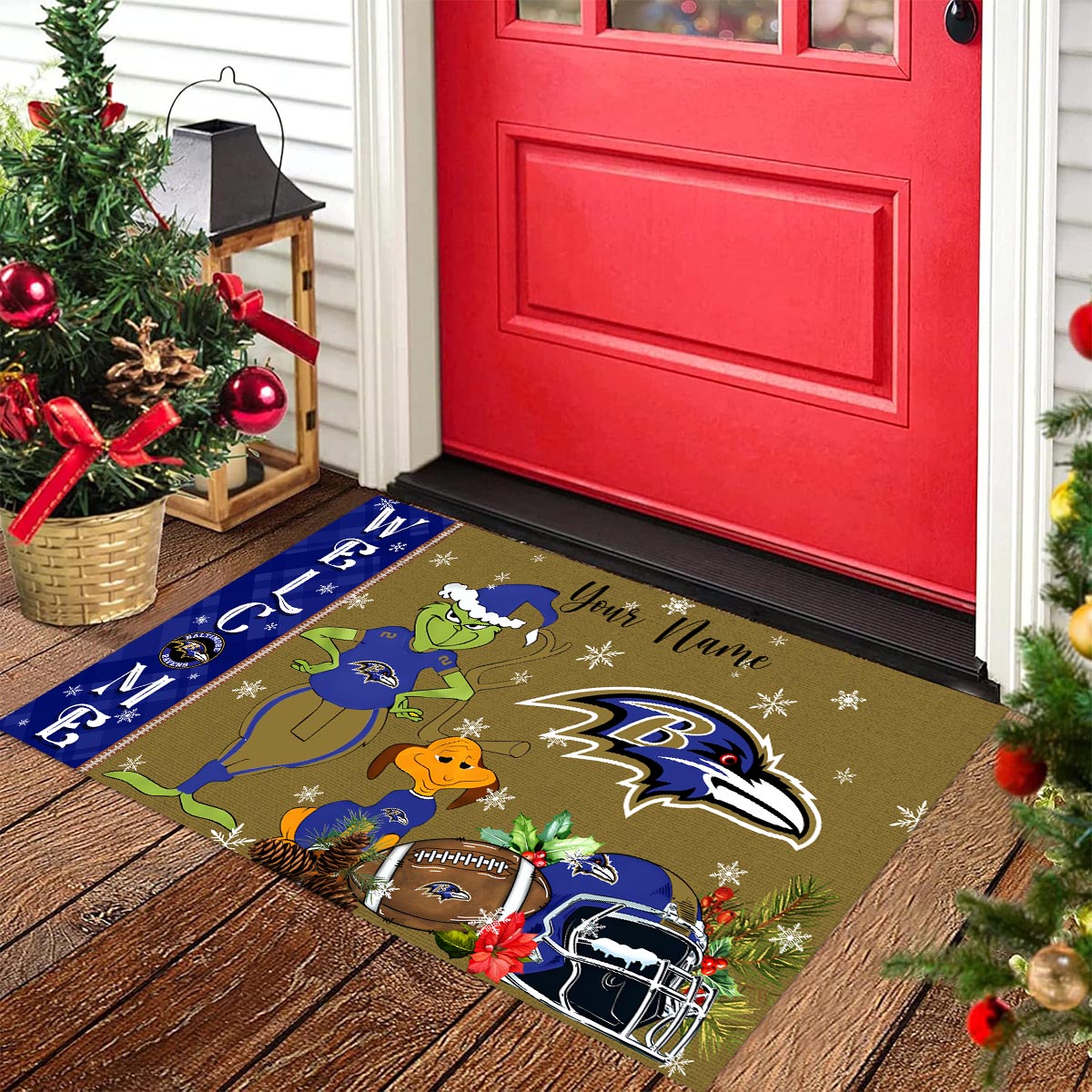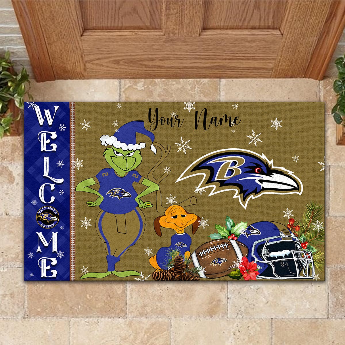 Baltimore Ravens Grinch Christmas Welcome Football Doormat