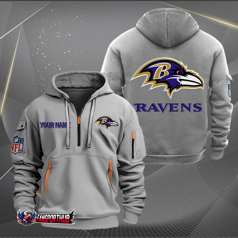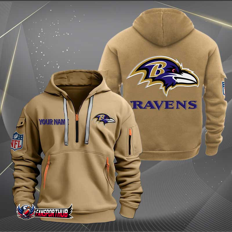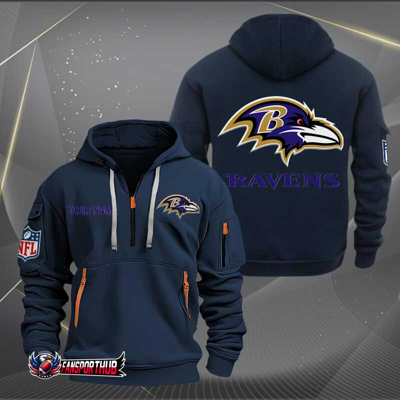 Baltimore Ravens New Personalized Quarter Zip Hoodie AZBTQZH000207