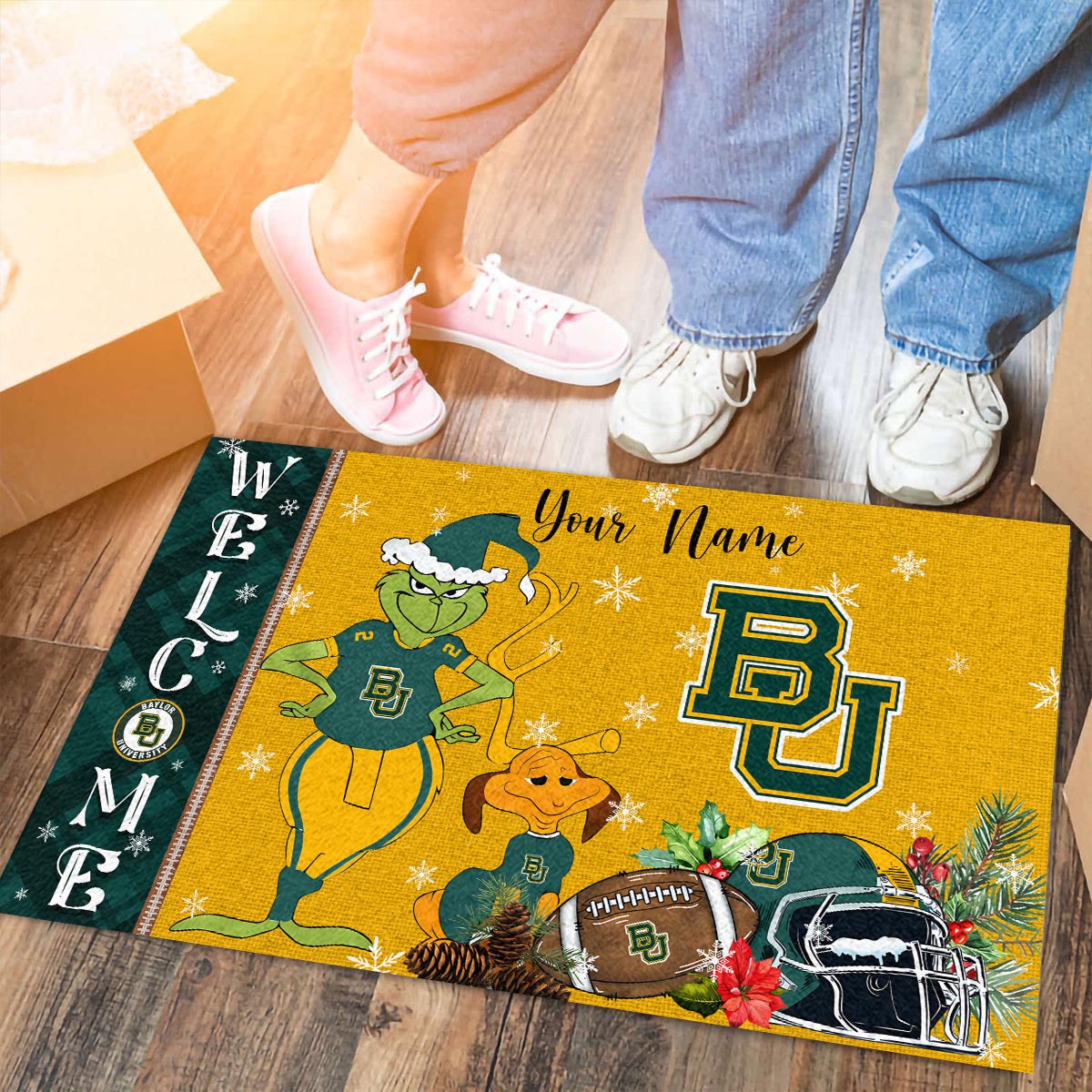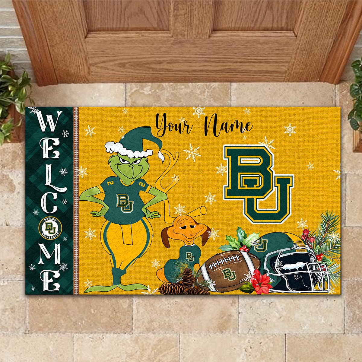Baylor Bears Grinch Christmas Welcome Football Doormat