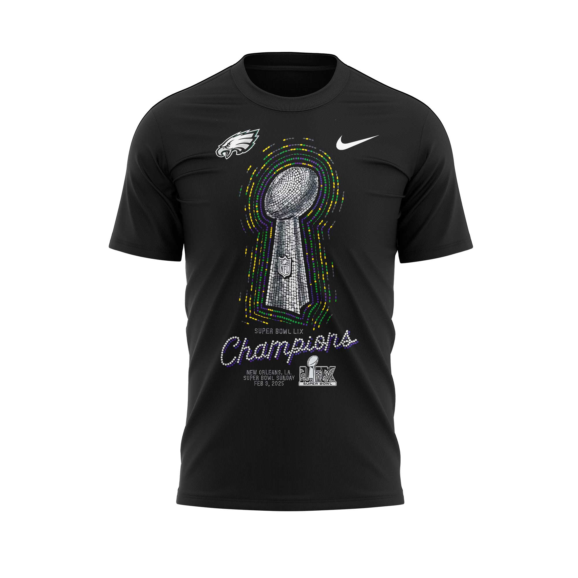 Black Philadelphia Eagles Super Bowl LIX Champions Lombardi Trophy T-Shirt