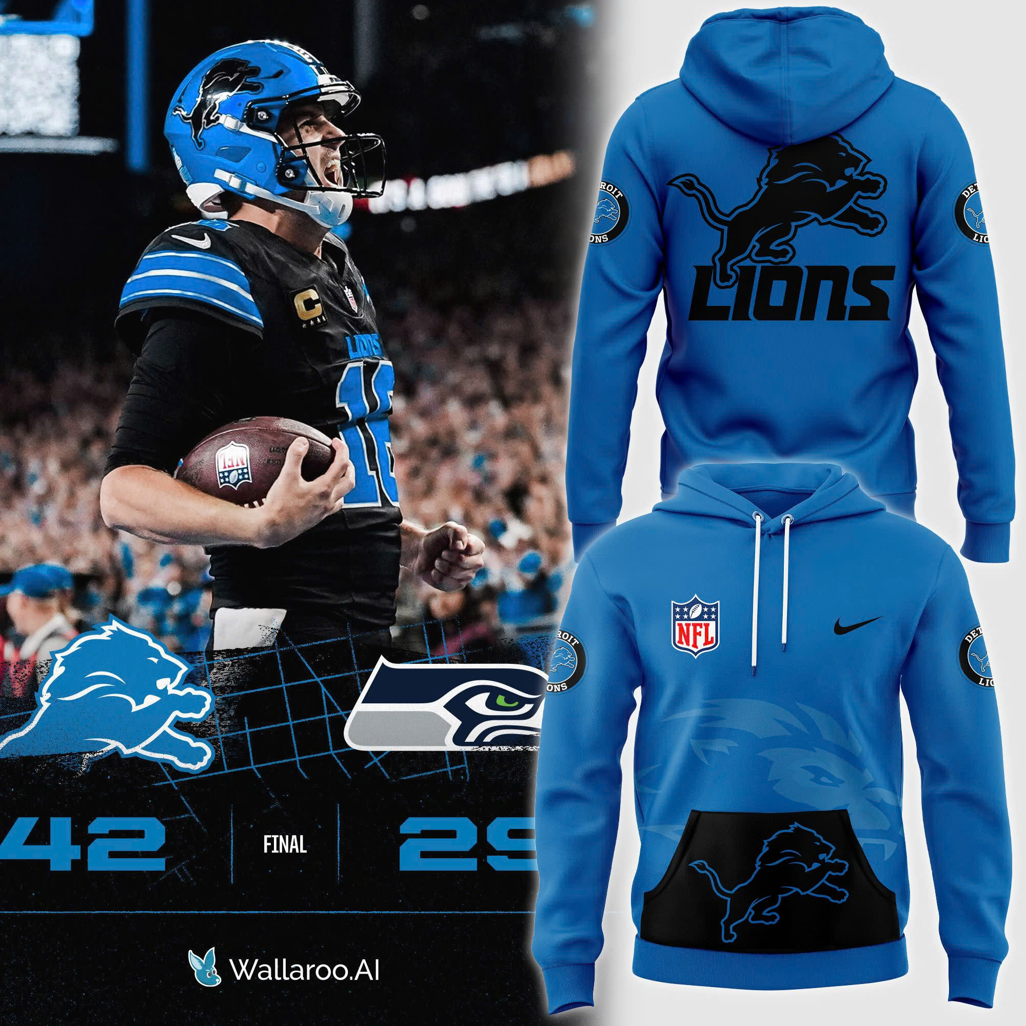 Blue Detroit Lions Alternate Helmet Pullover Hoodie