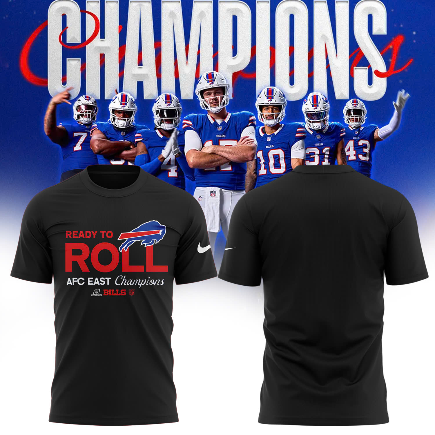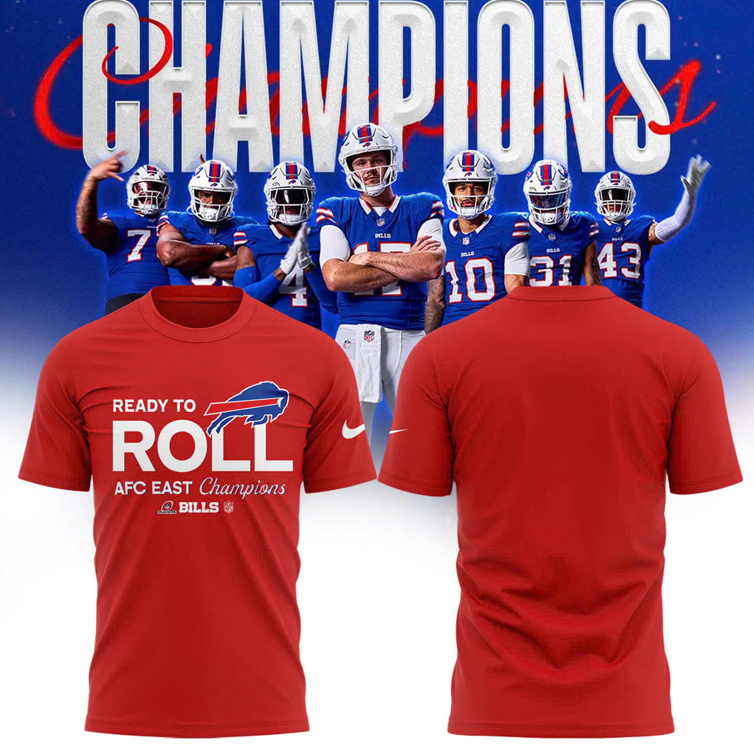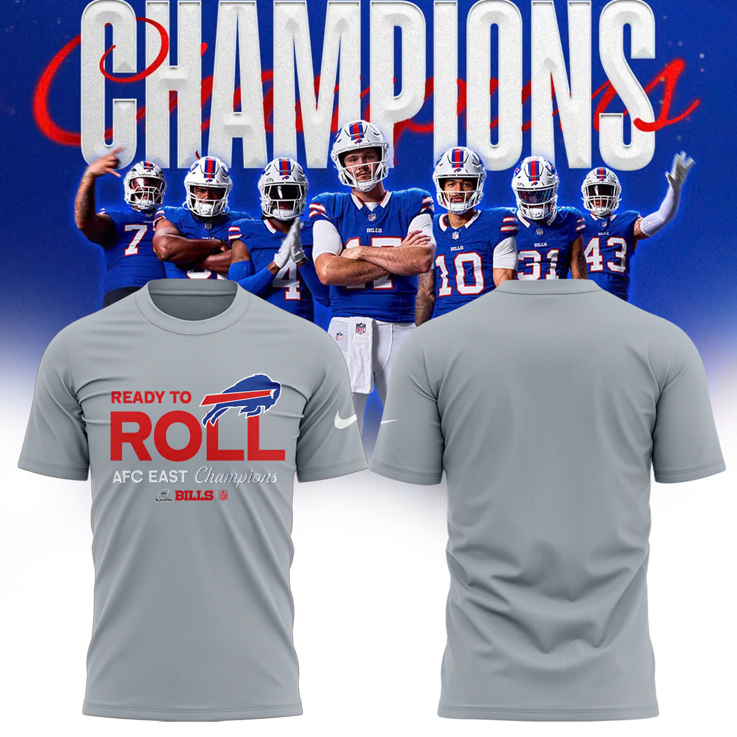 Buffalo Bills AFC East Division Champions Locker Room Trophy Collection Tee (Blue, Red, Gray, Black) Multicolor