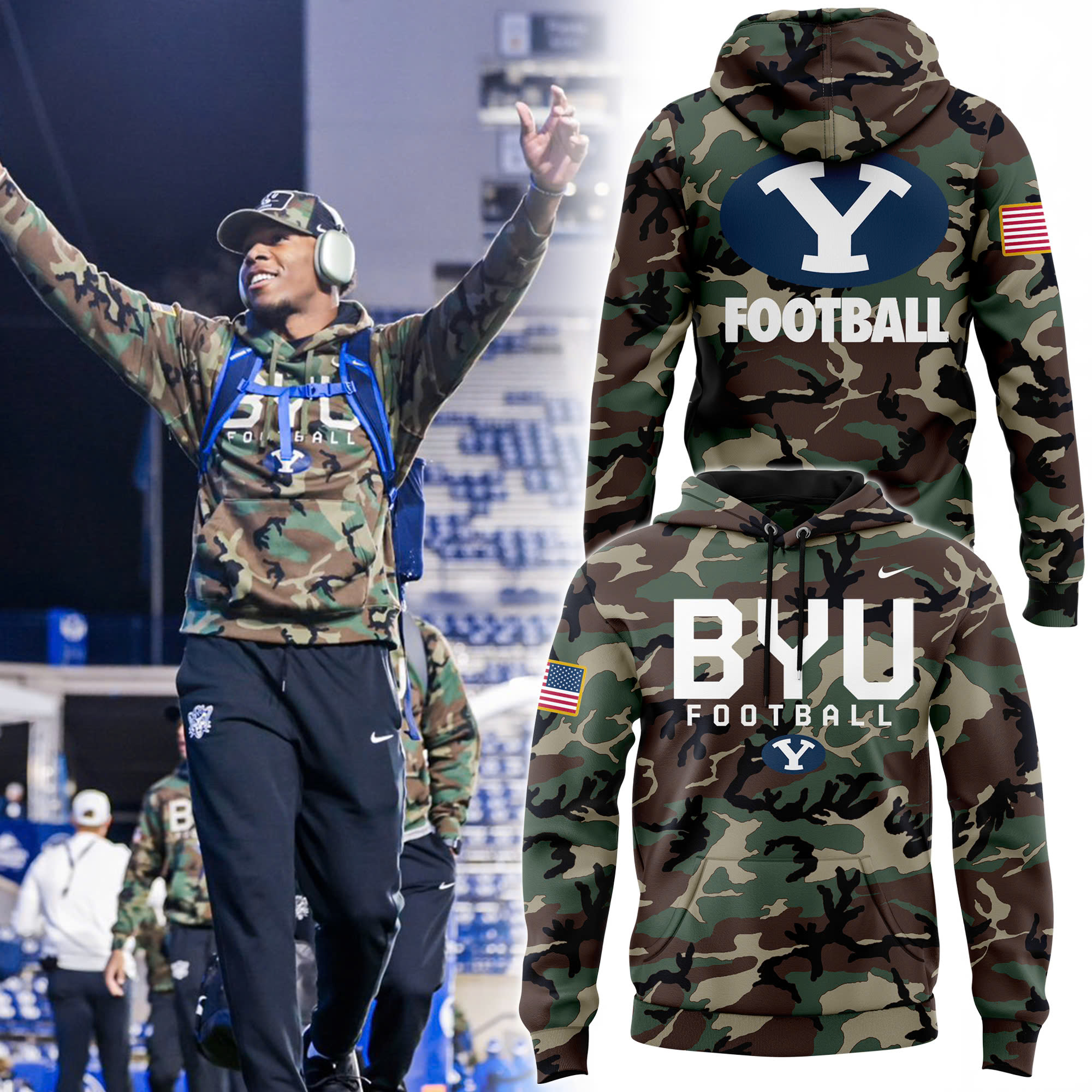 BYU Cougars football Camo Salute to Service Club Fleece Pullover Cap