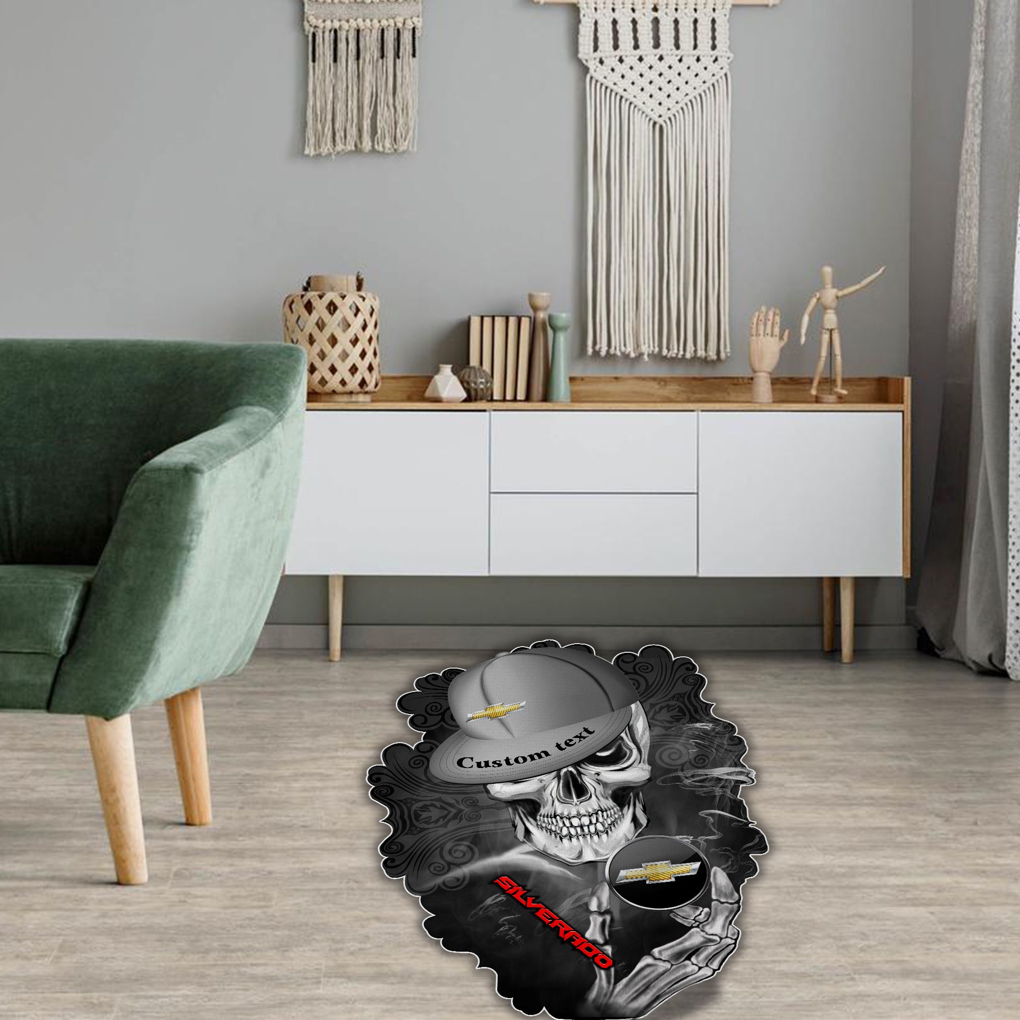 Chevy Silverado Skull Shaped Luxurious Doormat, Rug Home Decor, Custom name