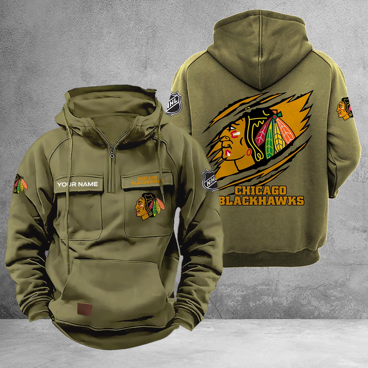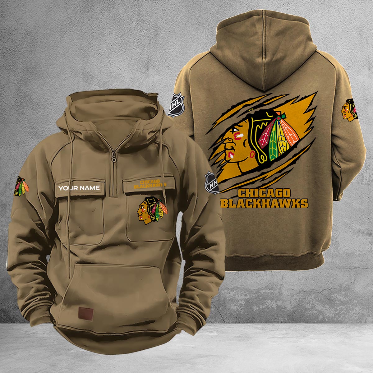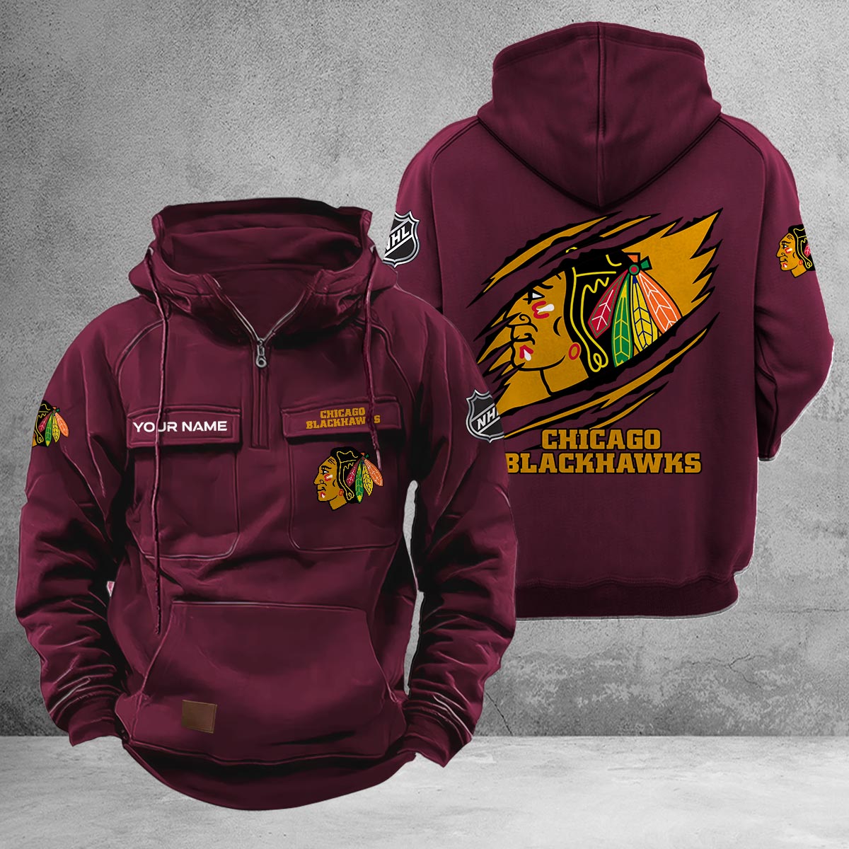 Chicago Blackhawks Multi-Pockets Zip-Up Hoodie