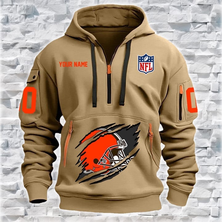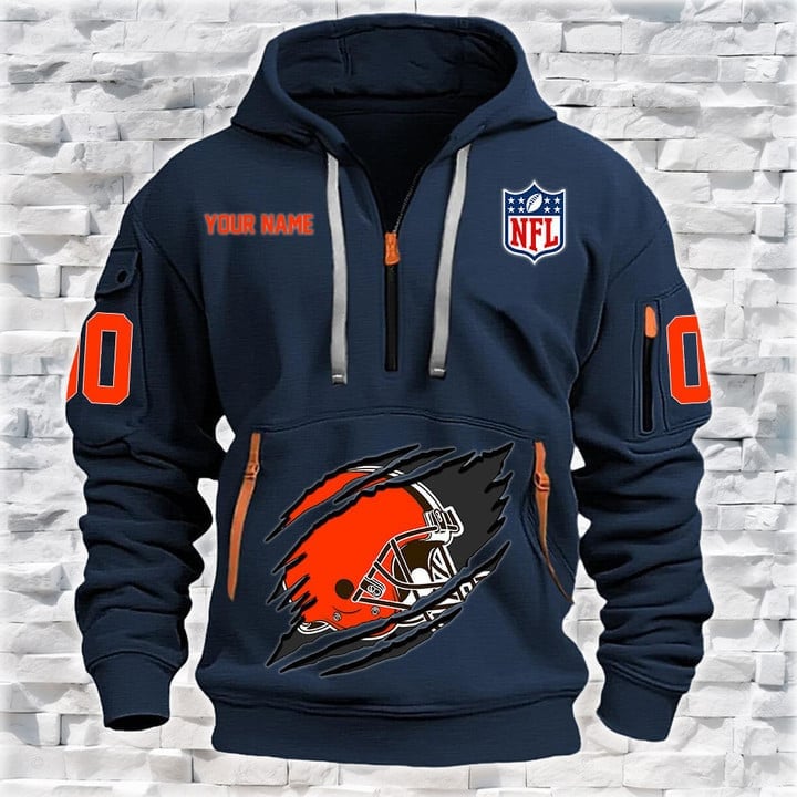 Cleveland Browns New Personalized Quarter Zip Hoodie AZBTQZH000082